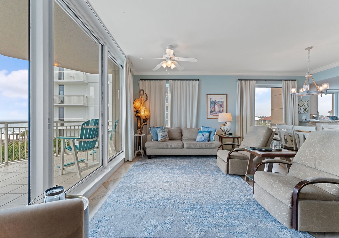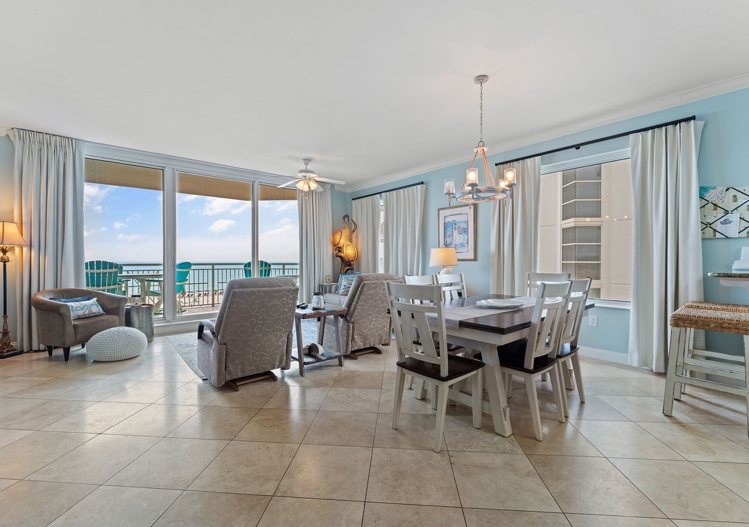 Your dream vacation awaits in this beautifully decorated 4-bedroom, 4-bathroom corner unit on the 3rd floor of Indigo West. Located along the pristine shores of the Gulf Coast, this luxury resort offers unobstructed views of the Gulf of Mexico’s sugar-white sands and emerald waters. The spacious condo boasts a coastal chic design with an open layout and high-end finishes. The living area features comfortable seating, a large flat-screen TV, and floor-to-ceiling sliding glass doors that open to a beachfront balcony, where you can soak in panoramic Gulf views while enjoying your morning coffee or a sunset dinner.