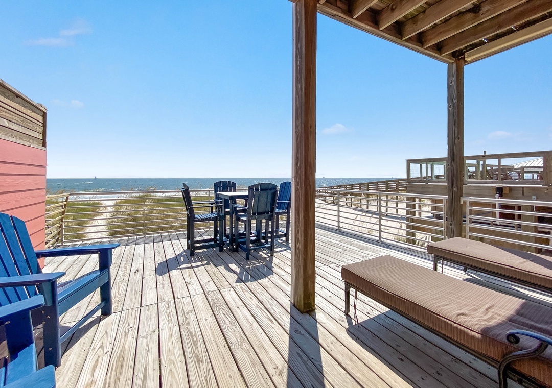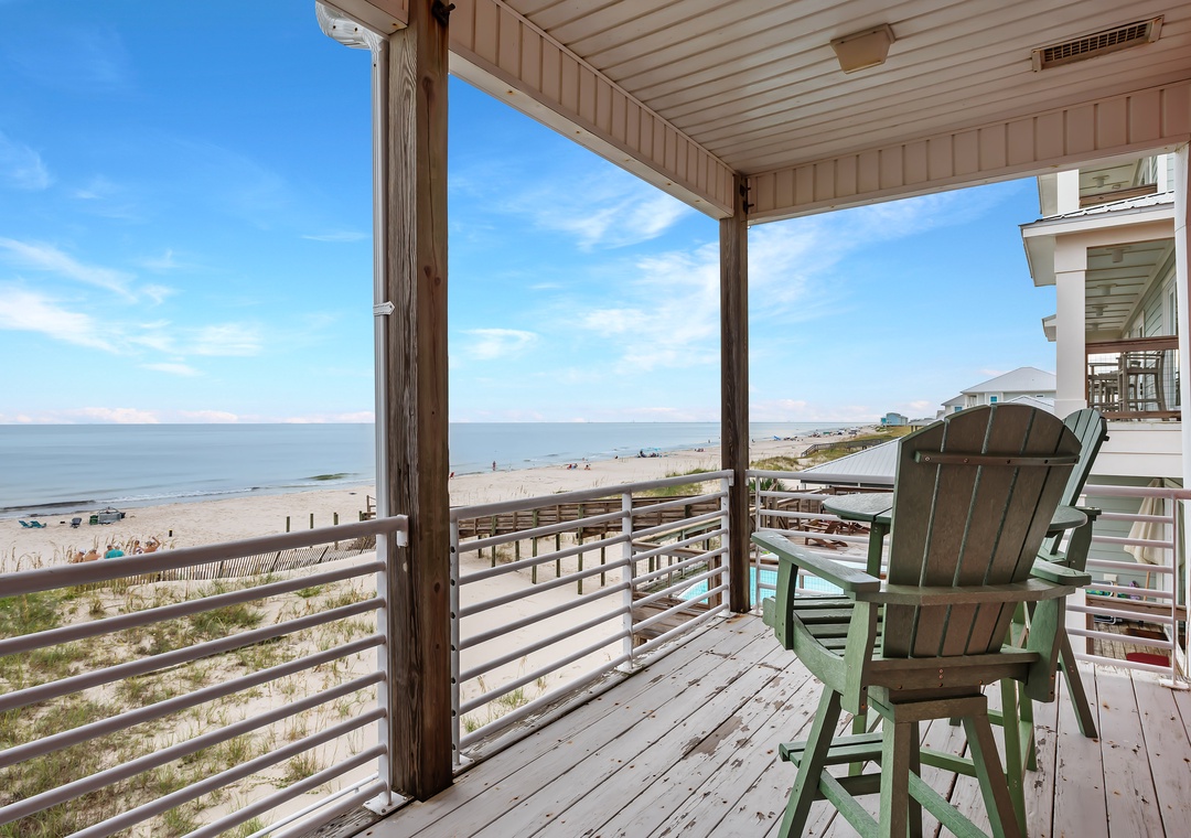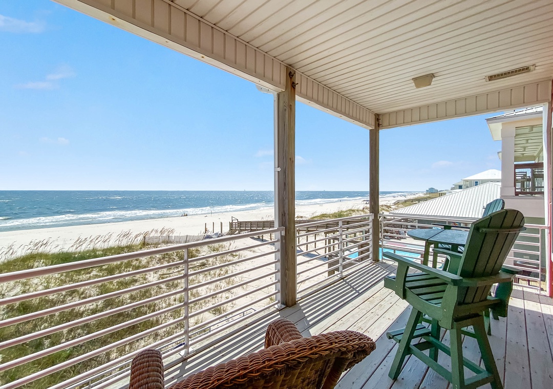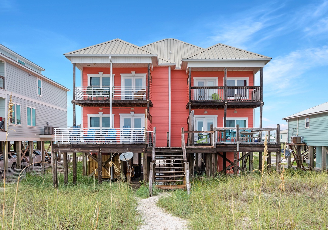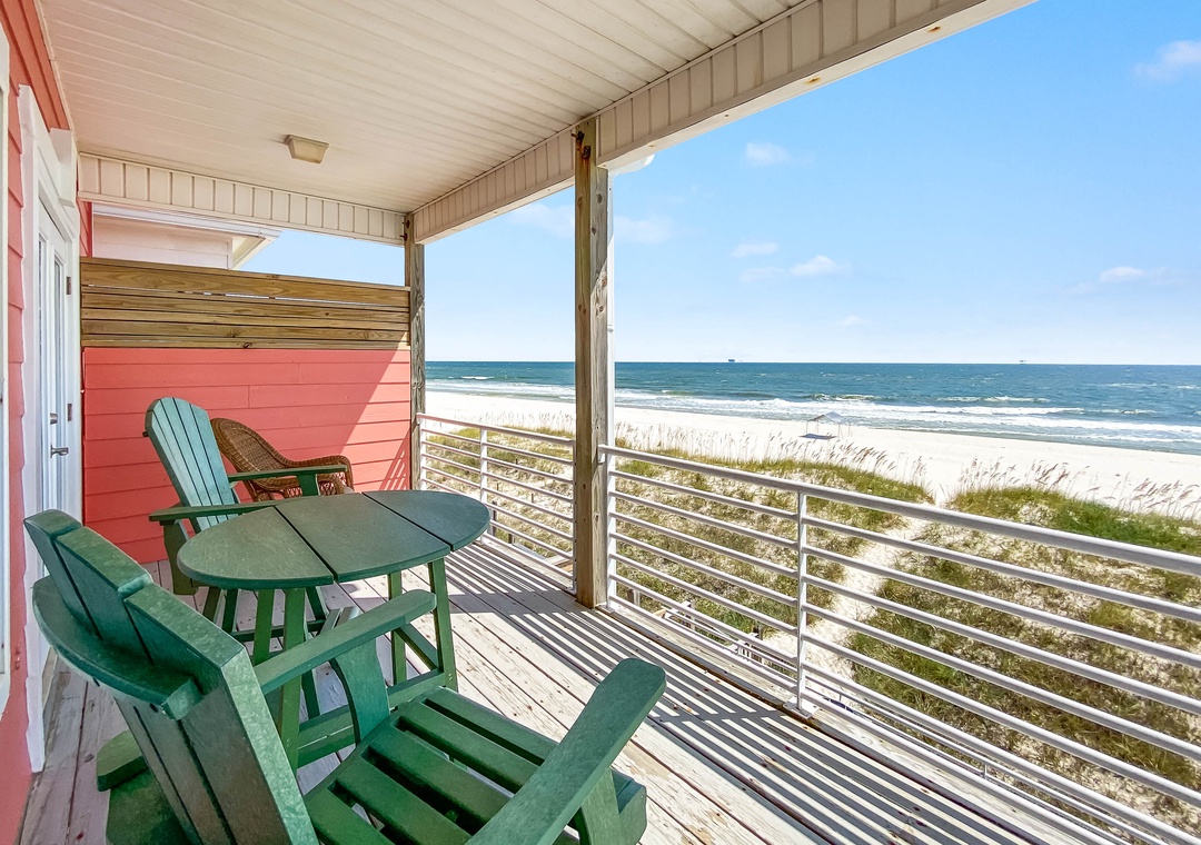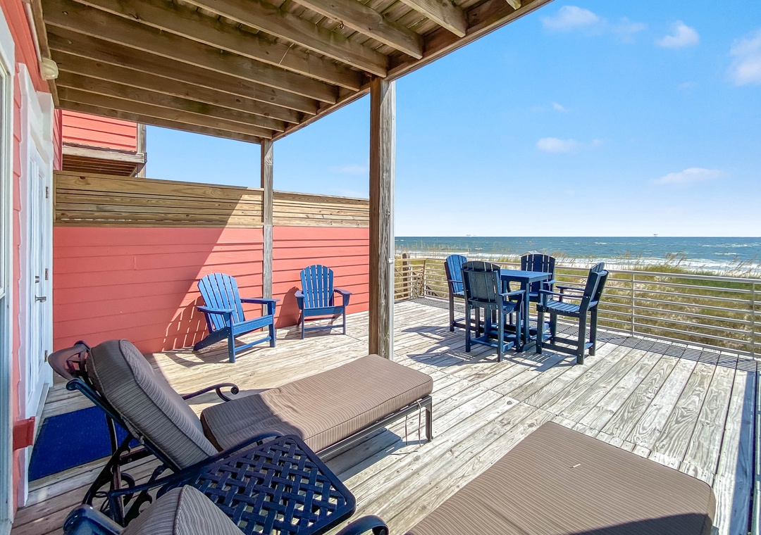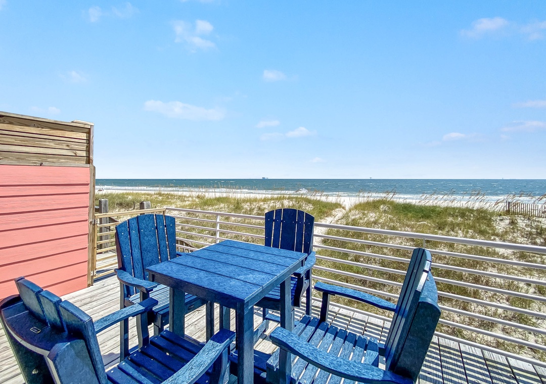 Welcome to Inheritance Delayed, the west side of a beautiful beachfront duplex in Fort Morgan. From the moment you arrive, the Gulf is your backdrop—just steps from the deck to the sand. Whether you’re starting the day with coffee overlooking the water, lounging in the sun, or unwinding in the new hot tub, this is the perfect setting to relax and recharge.