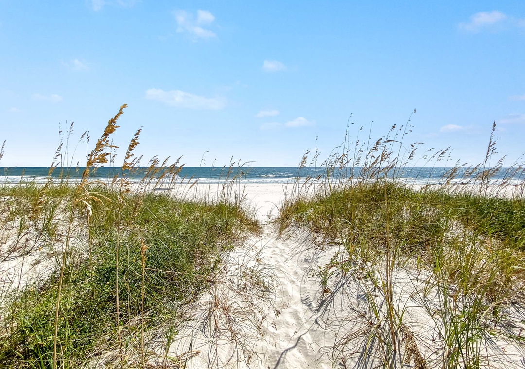 Snowbird-friendly, pet-friendly, and family-friendly, Inheritance Delayed offers a welcoming blend of luxury and ease. Homes like this on the beach in Fort Morgan are rare and highly sought after—book your stay and make the Gulf your getaway.
