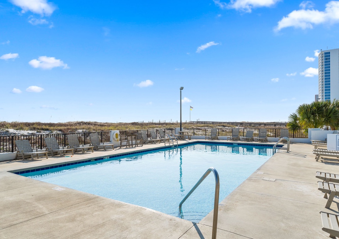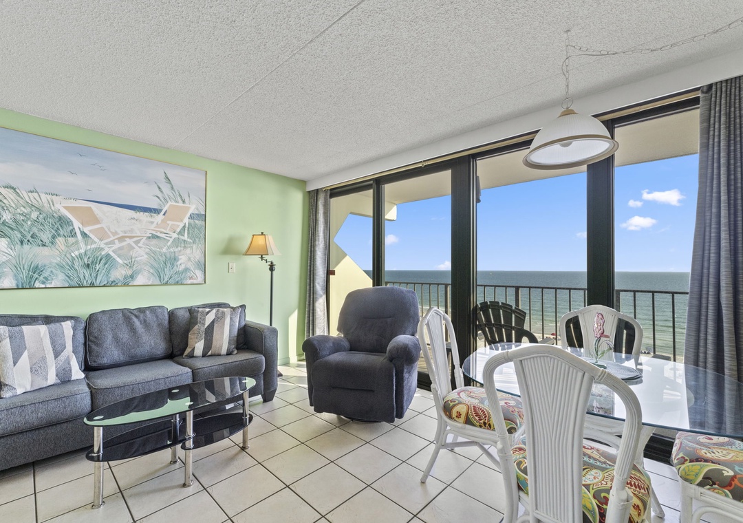 Upon entering, you’ll immediately notice the beach-inspired décor that creates a relaxed and inviting atmosphere. The soothing colors and coastal accents will transport you to a beachfront paradise. Imagine waking up to the sound of gentle waves and having the Gulf Coast at your doorstep. The bedroom features a spacious king-size bed. Maintaining an open and airy feel throughout the condo, please be aware that the master bedroom does not have a privacy door. Additional accommodations are provided with a comfortable queen-size sofa sleeper in the living room, perfect for extra guests or family members.