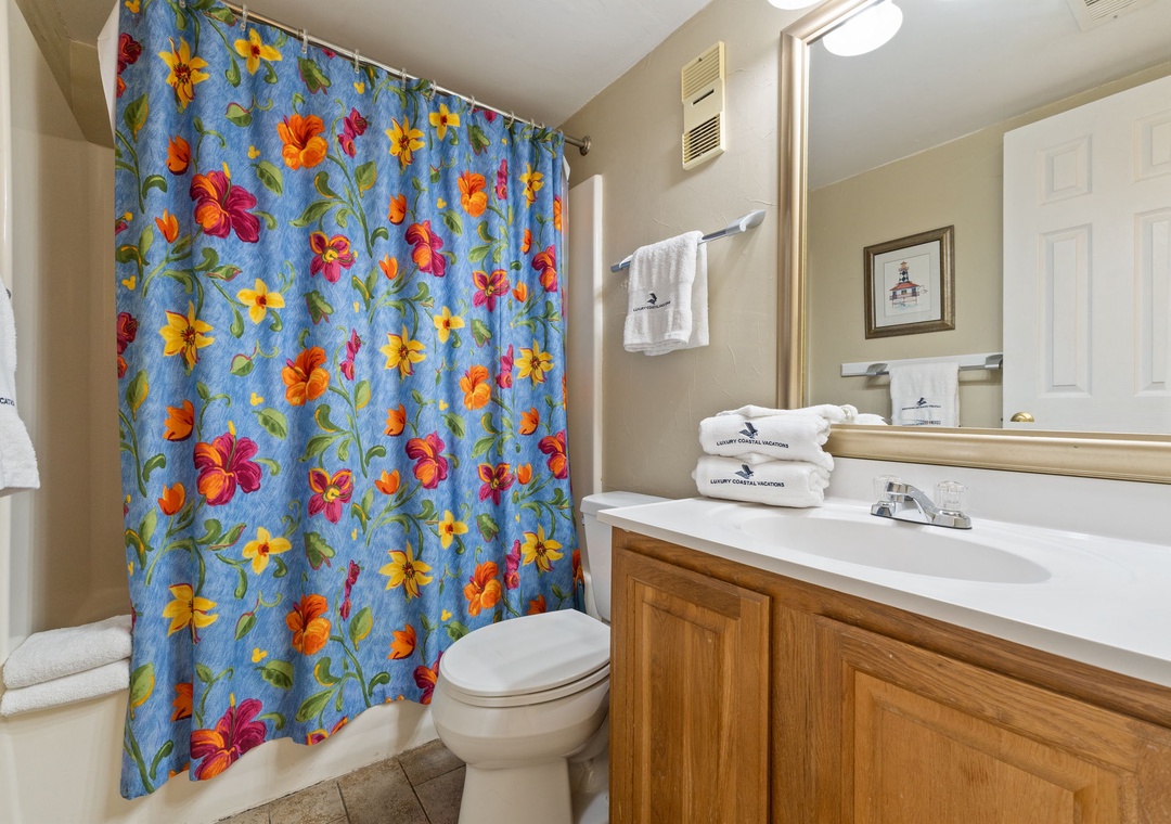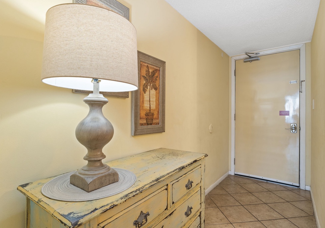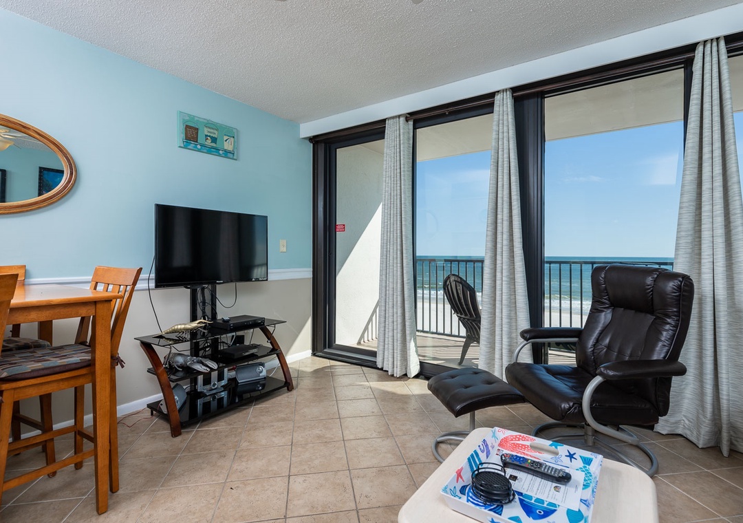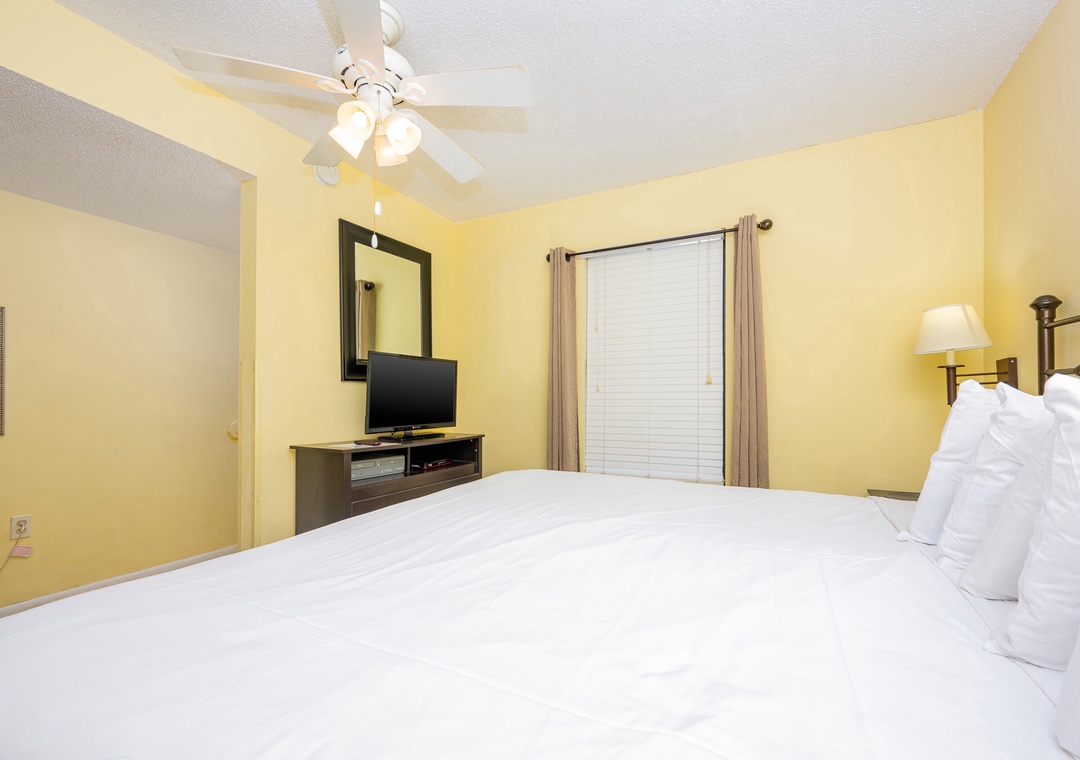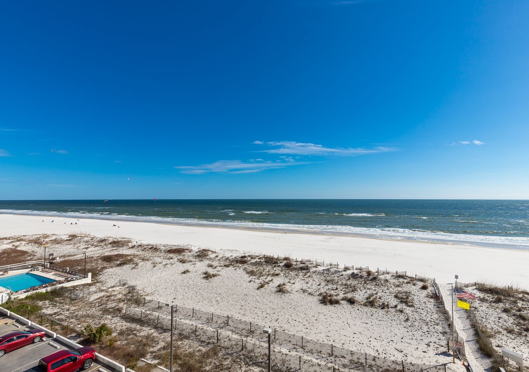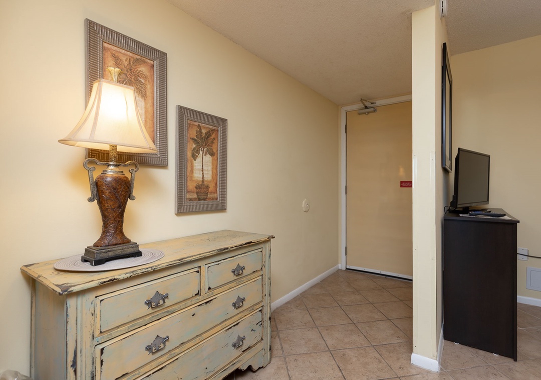 Upon entering, you’ll immediately notice the beach-inspired décor that creates a relaxed and inviting atmosphere. The soothing colors and coastal accents will transport you to a beachfront paradise. Imagine waking up to the sound of gentle waves and having the Gulf Coast at your doorstep. The bedroom features a spacious king-size bed. Maintaining an open and airy feel throughout the condo, please be aware that the master bedroom does not have a privacy door. Additional accommodations are provided with a comfortable queen-size sofa sleeper in the living room, perfect for extra guests or family members.
