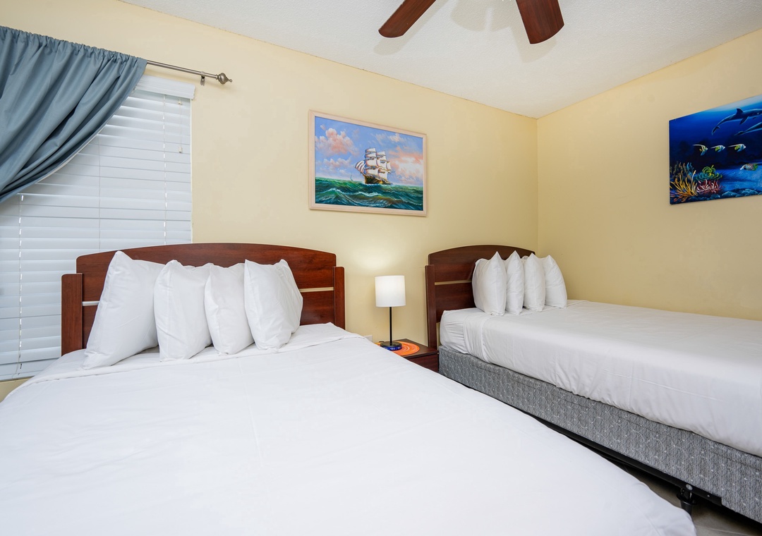 The condo is Unit 874 located on the top floor of Island Winds West with tile flooring and free Wifi throughout. There are 2 bedrooms each with private bathrooms.