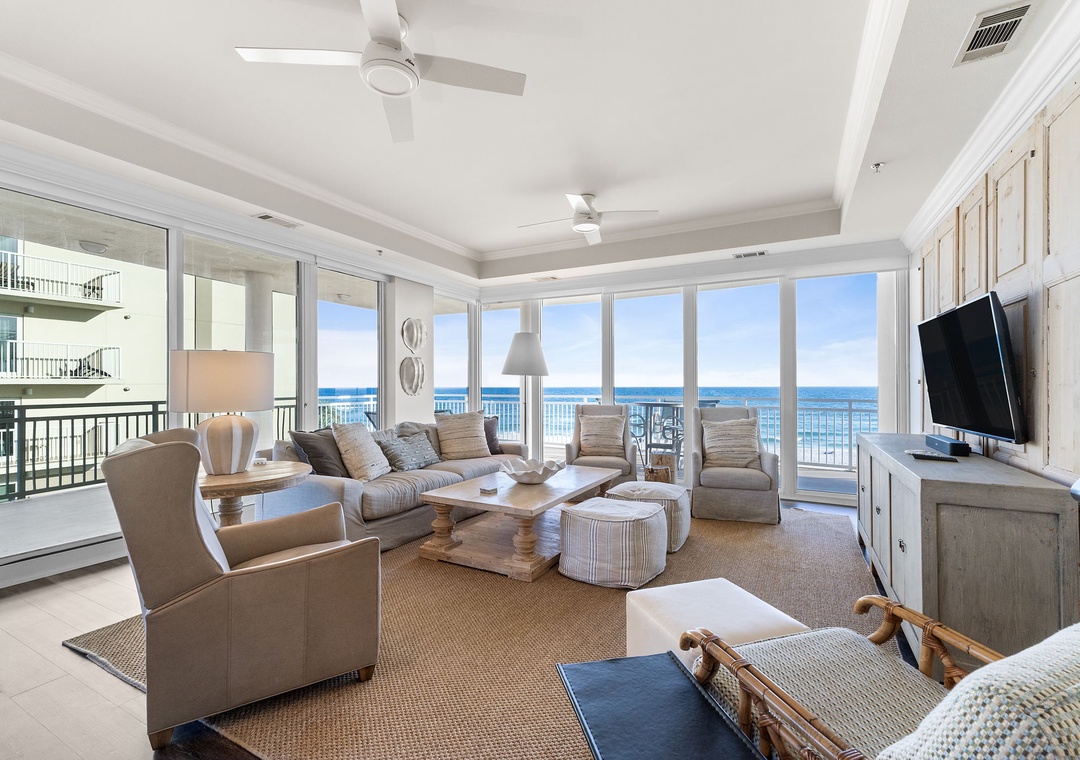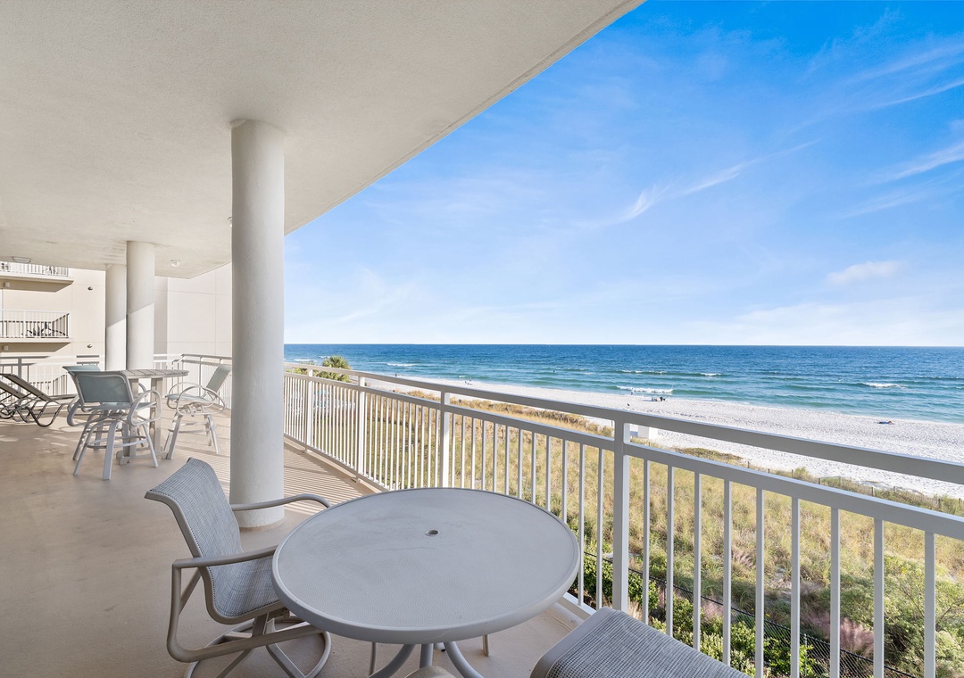 Welcome to La Playa 201, a stunning 3-bedroom, 3.5-bathroom corner unit that perfectly blends luxury and comfort. This elegantly designed condo features high-end furnishings, an open-concept living space, and floor-to-ceiling windows that showcase breathtaking panoramic Gulf views. The fully equipped gourmet kitchen offers stainless steel appliances, granite countertops, and a large breakfast bar, while the spacious living area opens to a wrap-around balcony—ideal for morning coffee or evening sunsets. Each bedroom is tastefully decorated and includes an ensuite bathroom, with the master suite featuring balcony access and a spa-inspired bath with a soaking tub and walk-in shower.