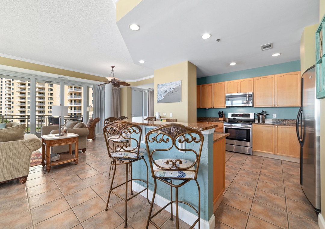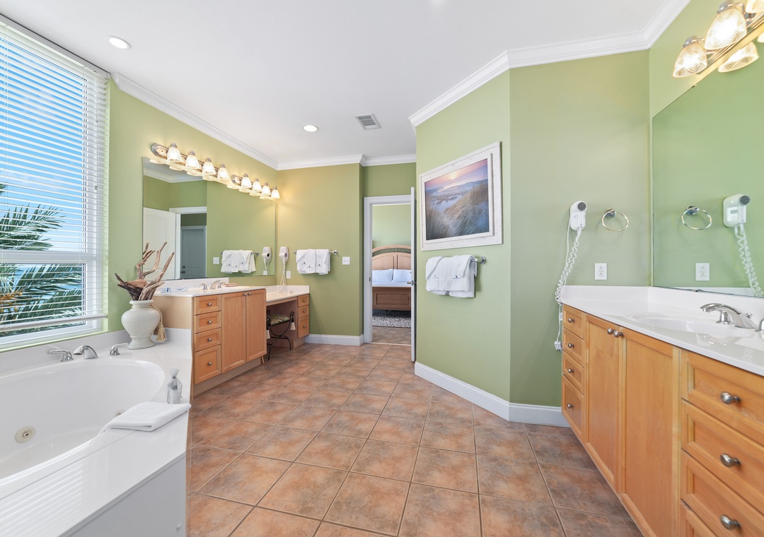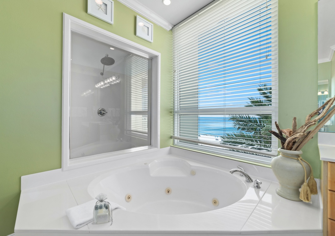 The fully equipped gourmet kitchen will ignite your inner-chef, boasting updated stainless steel appliances.The dining room offers a beautifully hand crafted wood table with seating for the 6, with additional seating for 4 at the spacious breakfast bar. Escape the stresses of the day and retreat to the grand master suite for some peace, quiet and blissful relaxation. This oasis hosts a king bed with premium mattress set, deluxe bedding and high thread count linens, and beachfront balcony access! The attached glamour bath is perfect for pampering after a long day of play, featuring a huge jetted tub and separate walk-in shower. The 3 additional guest bedrooms are equally luxurious, offering premium mattress sets, posh bedding and soft high-thread count cotton sheets as well, ensuring everyone a good night's sleep!