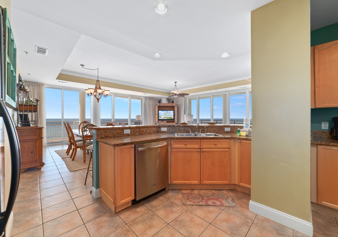 Very spacious condo with a huge wrap around patio and a beautiful view up and down the coastline.