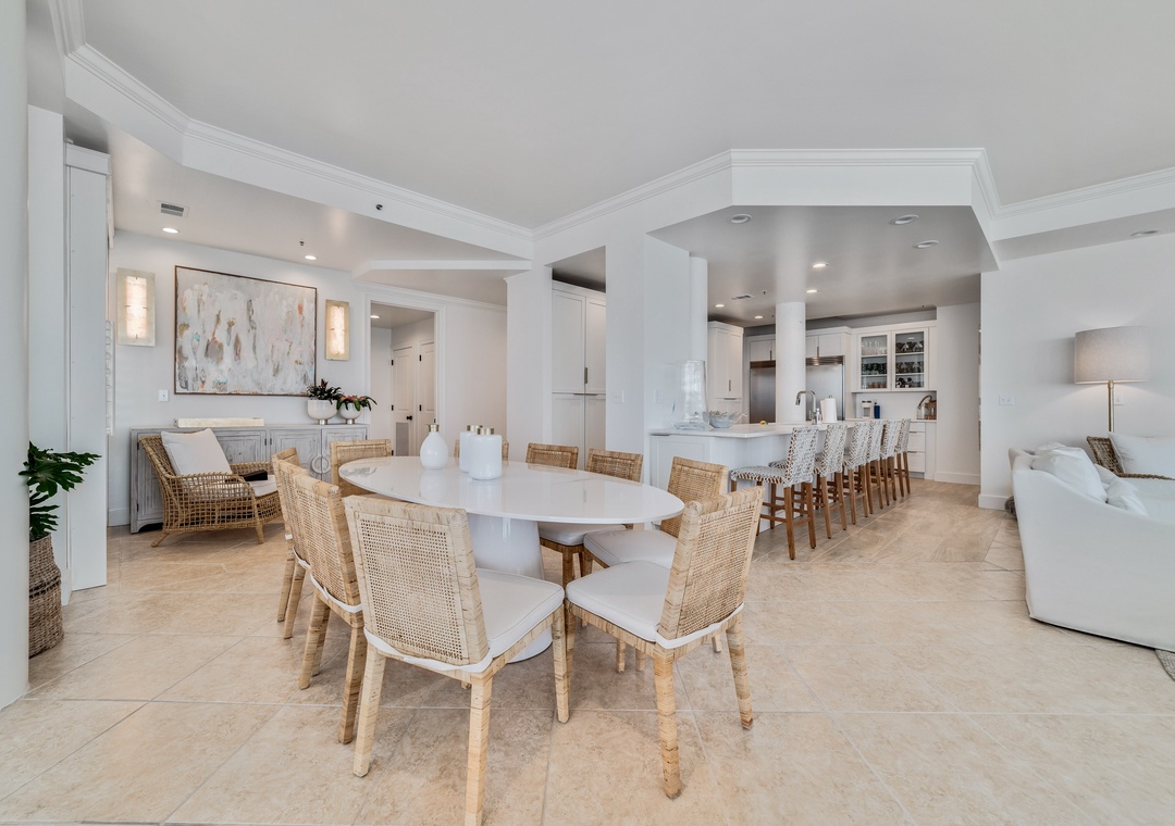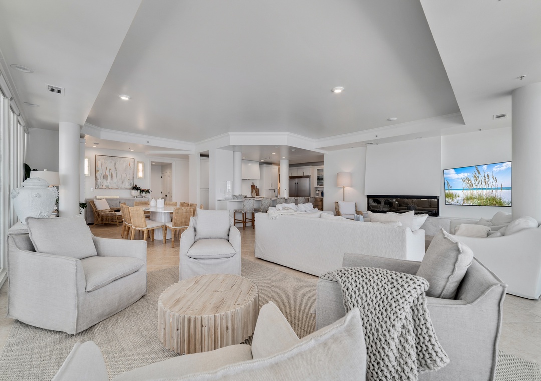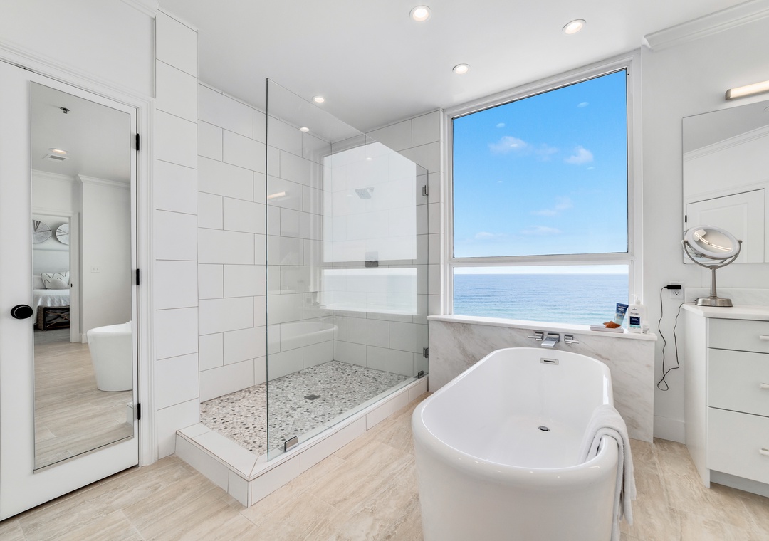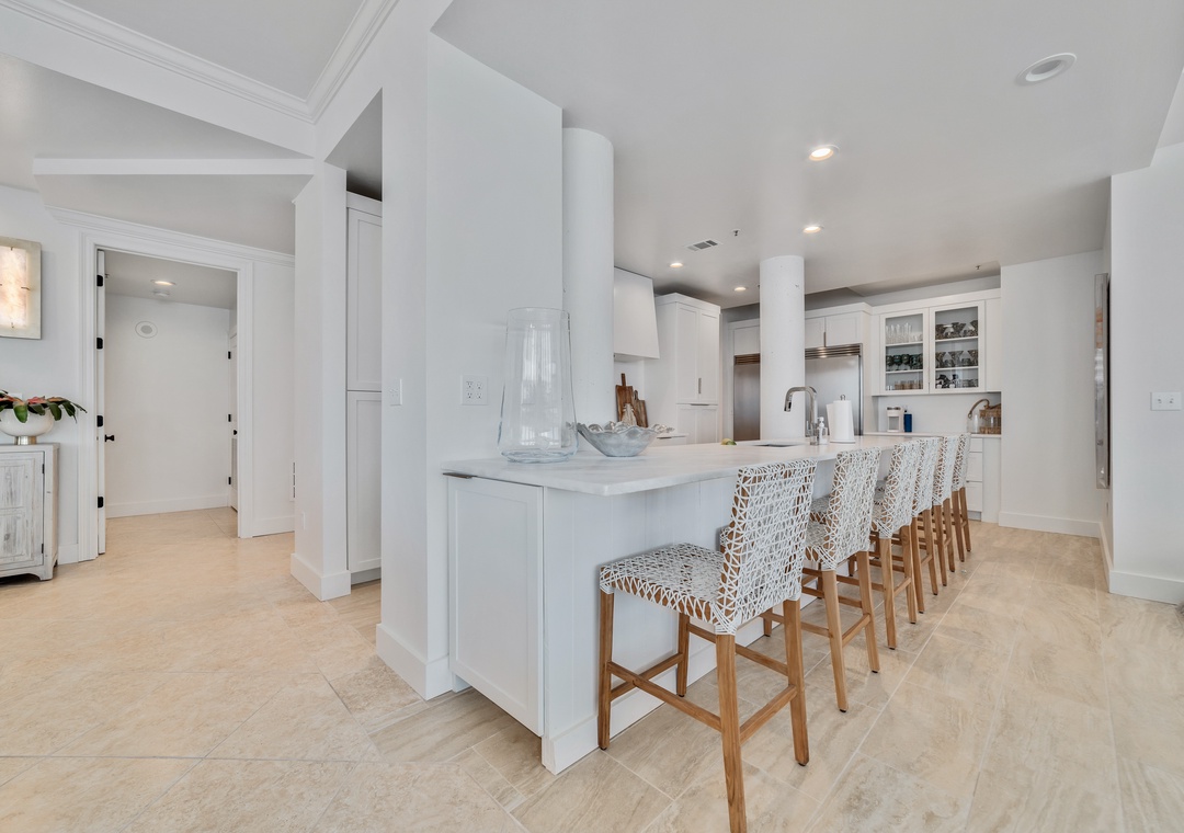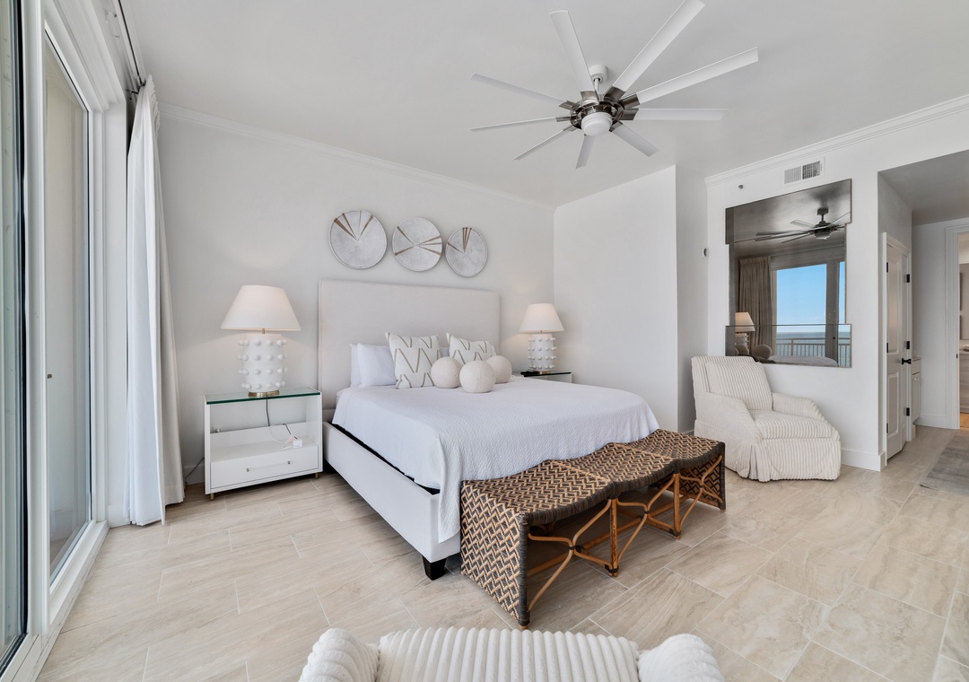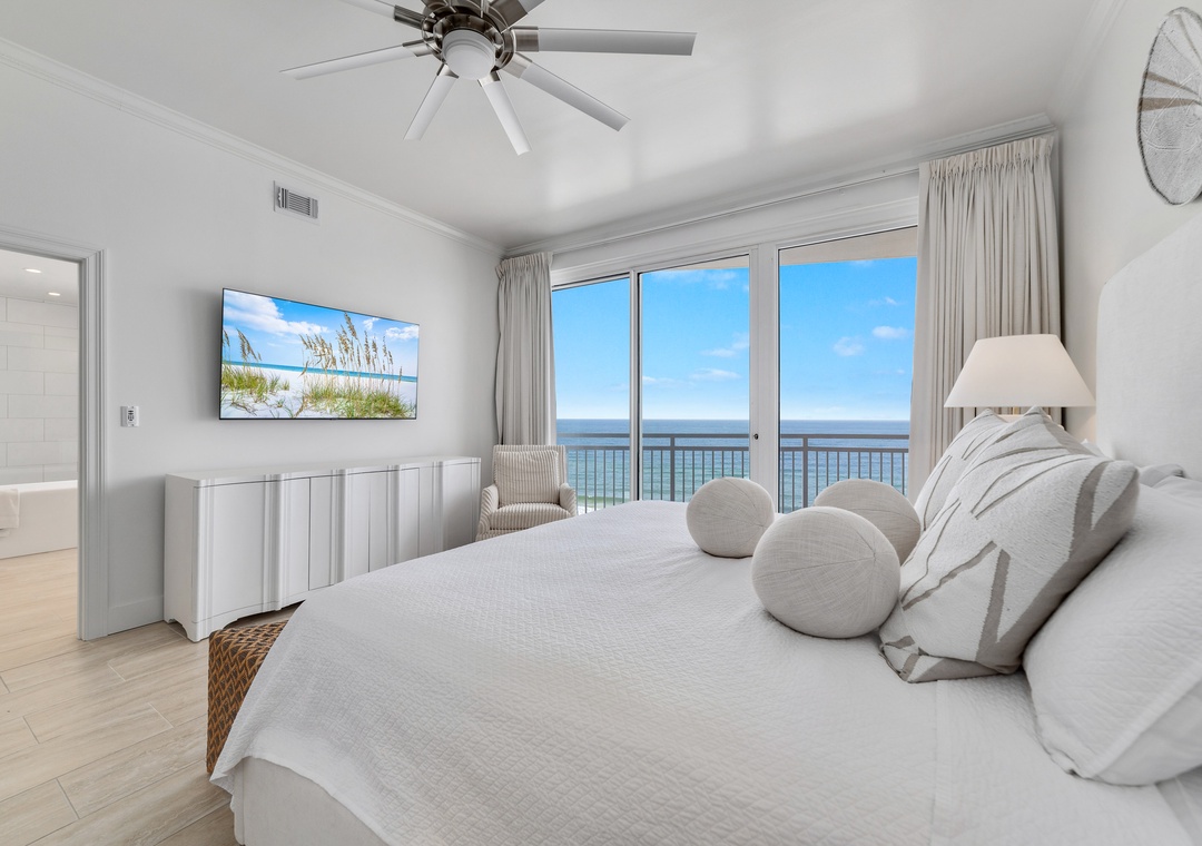 The fully equipped gourmet kitchen will ignite your inner-chef, boasting updated stainless steel appliances.The dining room offers a beautifully hand crafted wood table with seating for the 10, with additional seating for 6 at the spacious breakfast bar. Escape the stresses of the day and retreat to the grand master suite for some peace, quiet and blissful relaxation. This oasis hosts a king bed with premium mattress set, deluxe bedding and high thread count linens, and beachfront balcony access! The attached glamour bath is perfect for pampering after a long day of play, featuring a huge soaking tub overlooking the Gulf and separate walk-in shower. The 3 additional guest bedrooms are equally luxurious, offering premium mattress sets, posh bedding and soft high-thread count cotton sheets as well, ensuring everyone a good night's sleep!