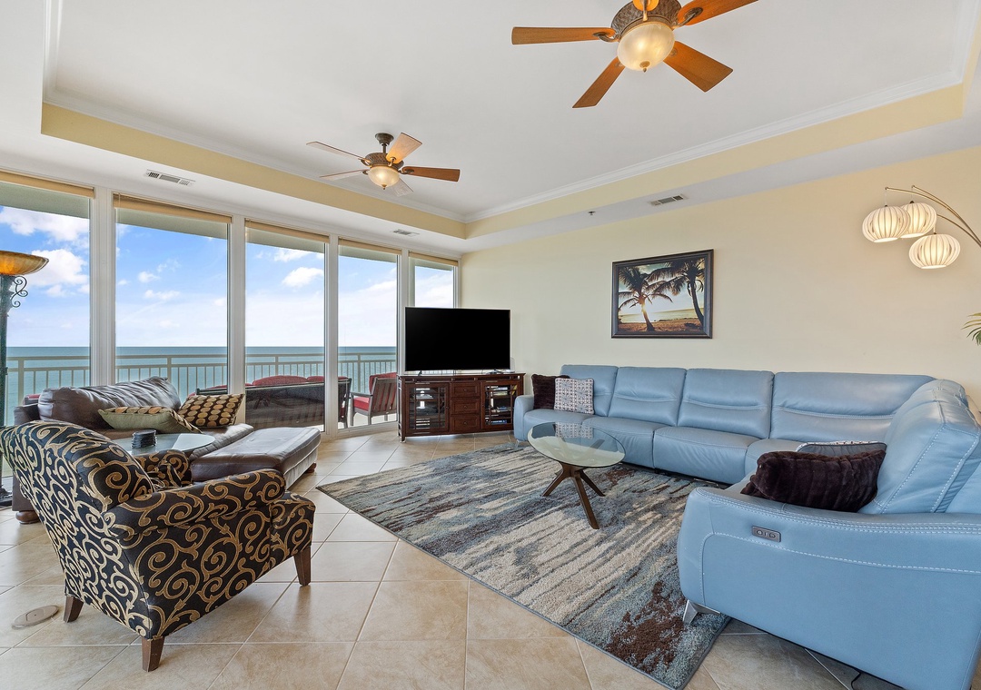 Catch up on some much-needed rest and relaxation in the master suite, featuring gulf front floor to ceiling windows and doors with access to the enormous balcony, a king bed with luxurious bedding and an attached glamour bath. Immerse yourself in the 2-person jetted tub overlooking the gulf, or refresh in the separate glass and tile shower. Other features include his-and-her vanities with granite countertops and even a bidet! Each of the other 2 bedrooms are equally impressive. The second master has a queen bed, private bath, and large screen LCD HDTV. The 3rd bedroom has 2 full size beds, a private bath, and a large screen LCD HDTV. Both rooms have phenomenal views, luxury high-end furnishings and state of the art electronics.