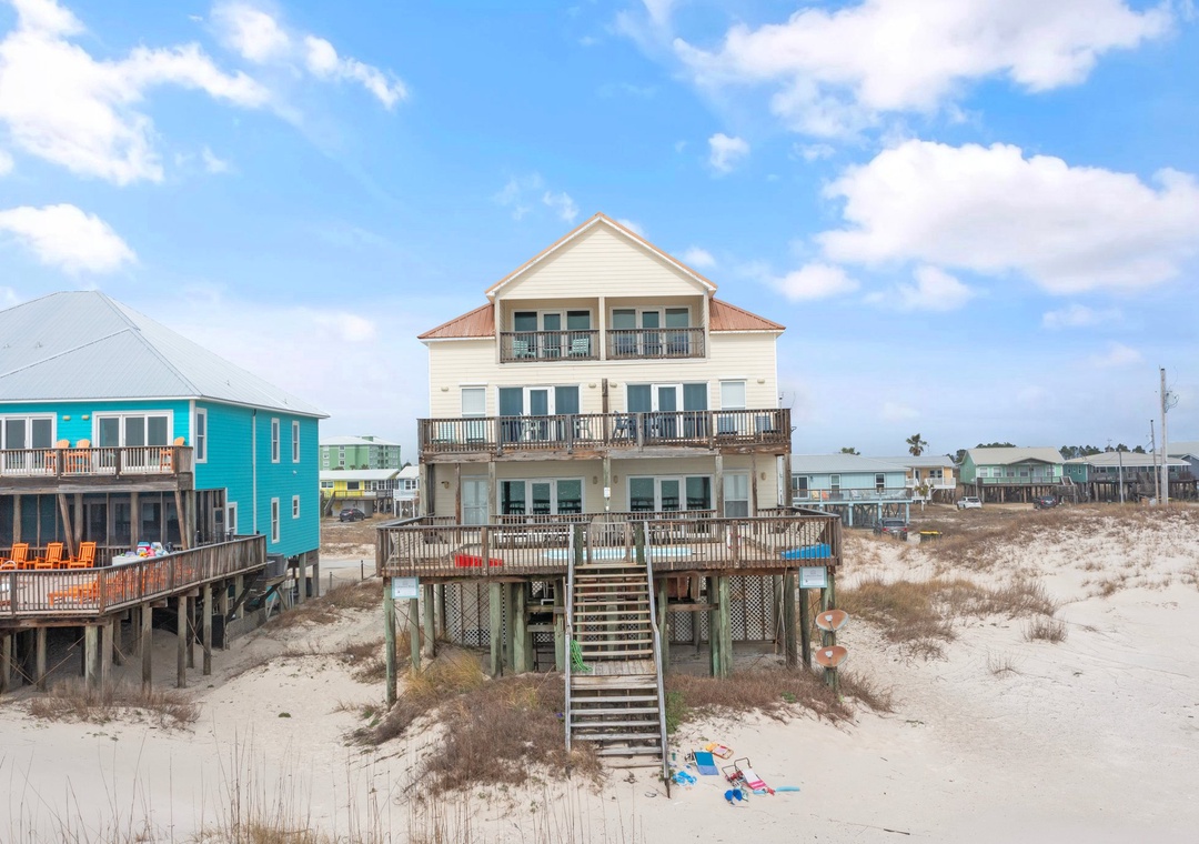 Escape to Labacoco, a captivating beachfront duplex retreat nestled on the pristine shores of the Fort Morgan Peninsula. As you step onto the beach from the base of your staircase, you'll be greeted by the breathtaking panorama of the Gulf, offering a splendid backdrop to both the beginning and end of each day.