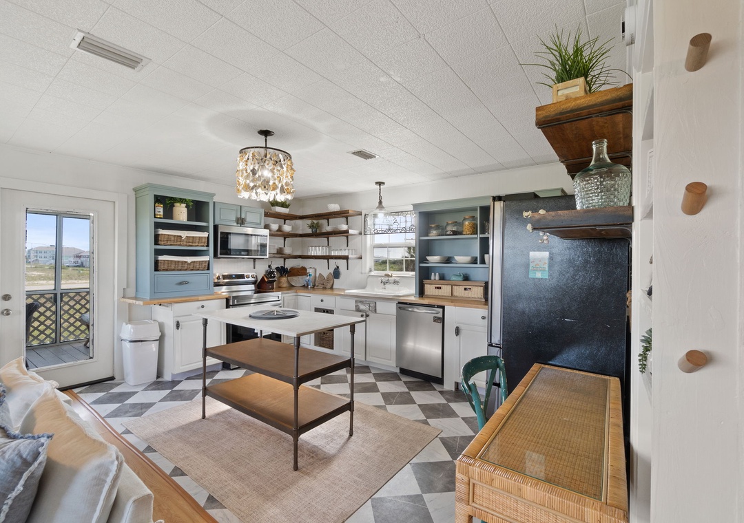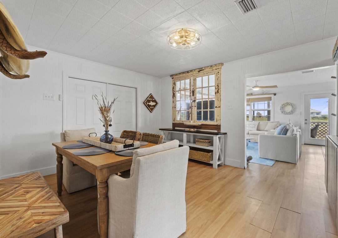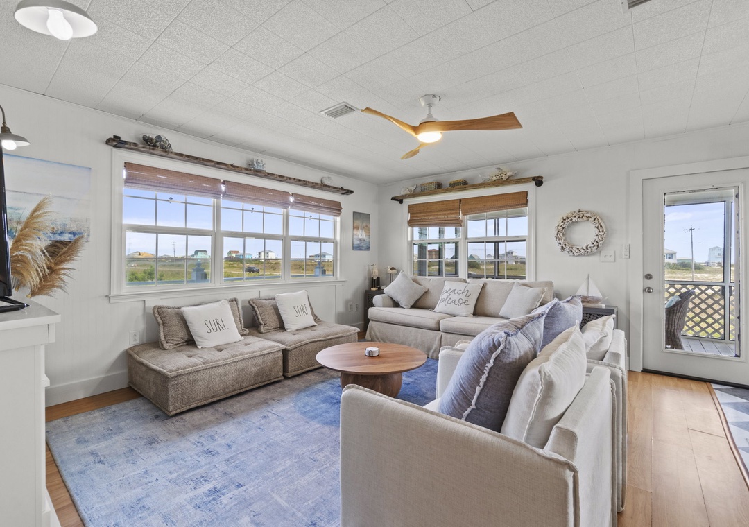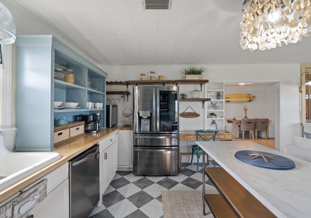 Inside, enjoy a fully equipped modern kitchen with stainless steel appliances, quartz countertops, and an open-concept living space designed for comfort and connection. The main bedroom offers a plush king bed, while the second bedroom also features a king. The third bedroom is a kid-friendly haven with two small twin beds and a twin bunk. A full sleeper sofa in the living room allows Latitude Adjustment to comfortably sleep up to 10 guests. Whether you're planning a fun-filled family vacation or a laid-back beach escape with friends, this home is the perfect base for making memories.