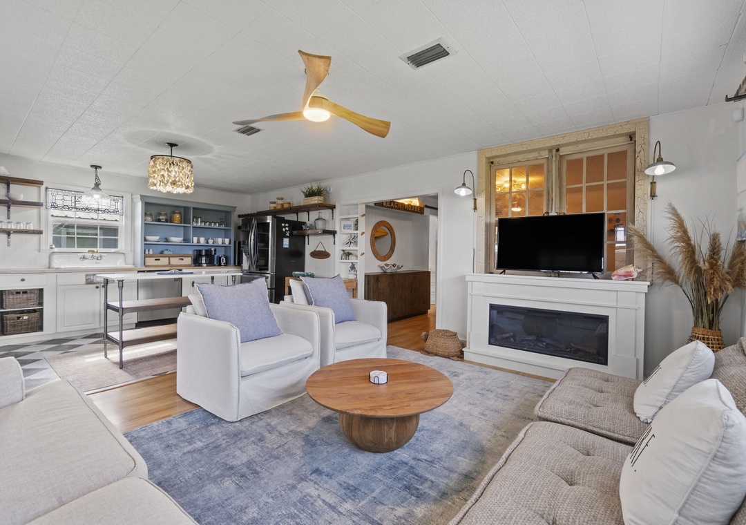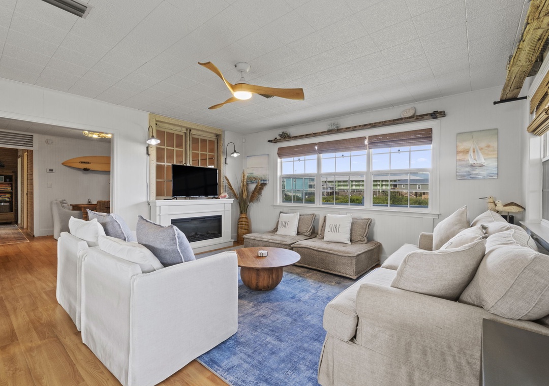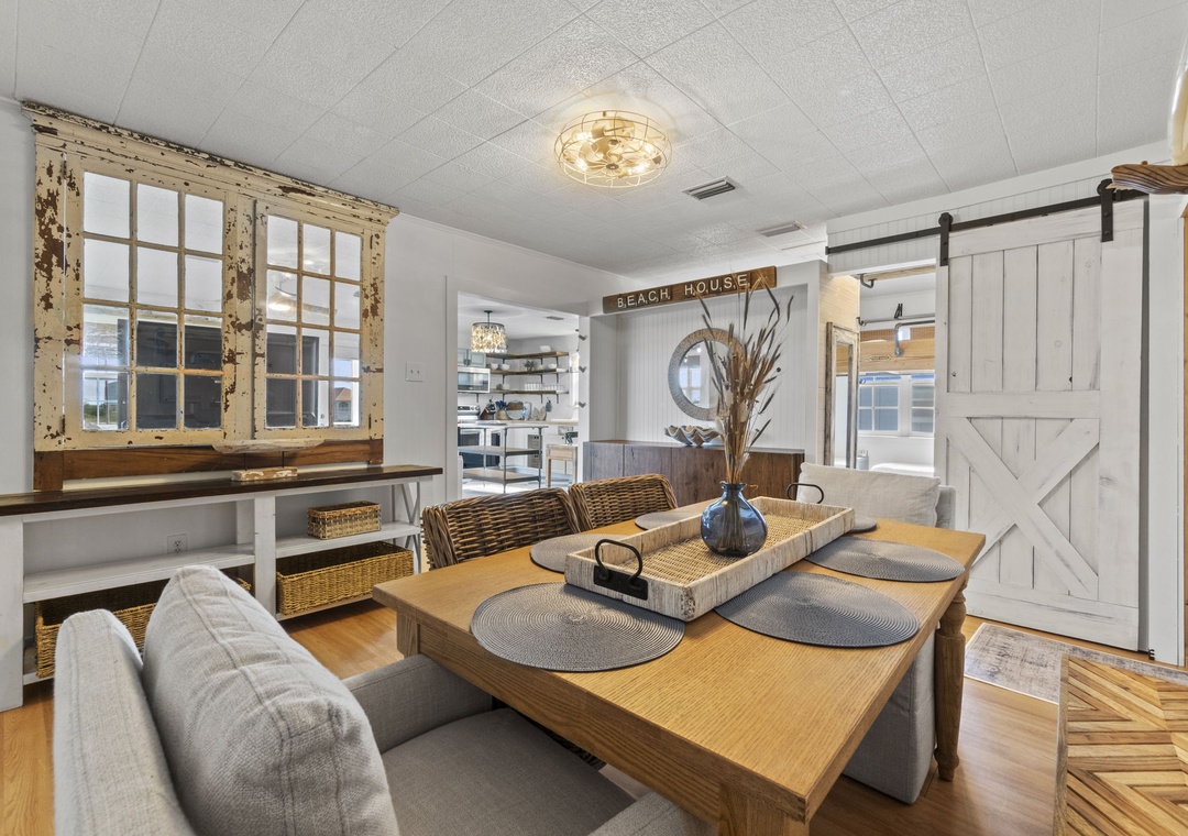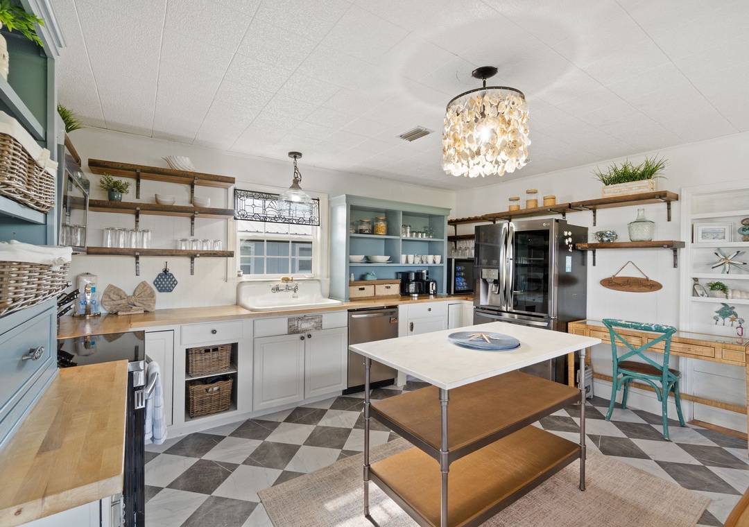 Inside, enjoy a fully equipped modern kitchen with stainless steel appliances, quartz countertops, and an open-concept living space designed for comfort and connection. The main bedroom offers a plush king bed, while the second bedroom also features a king. The third bedroom is a kid-friendly haven with two small twin beds and a twin bunk. A full sleeper sofa in the living room allows Latitude Adjustment to comfortably sleep up to 10 guests. Whether you're planning a fun-filled family vacation or a laid-back beach escape with friends, this home is the perfect base for making memories.