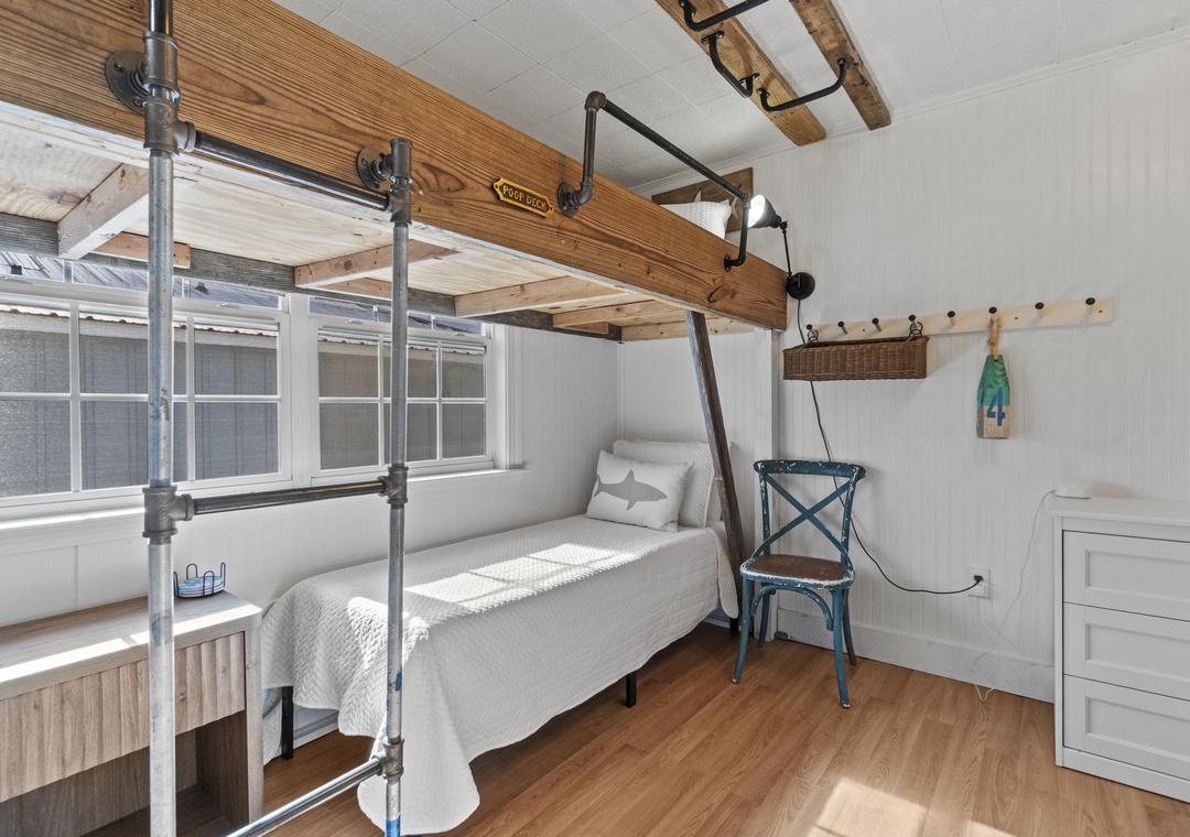 This place was absolutely perfect! From the moment we arrived, you could tell someone poured love and thought into every little detail. It was the cutest beach house — cozy, charming, and full of personality. Even the bunk beds had a fun beachy sign that said “Poop Deck” — how adorable is that?