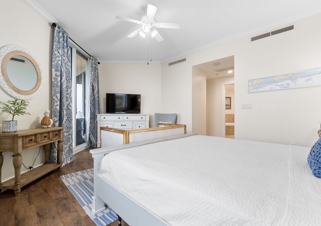 Retire to one of three luxuriously appointed bedrooms and catch some quality z’s during your much-deserved getaway! The master offers balcony access only a few steps from your comfy king bed! The master bath is equally impressive, including a huge soaking tub and separate walk-in shower, his and her vanities, plenty of counter and cabinet space. The guest bedrooms are equally accommodating, with each featuring premium mattress sets, posh bedding and high thread count linens, the whole group is sure to indulge in some quality rest and relaxation! Visit Perdido Key and experience the vacation of your dreams!