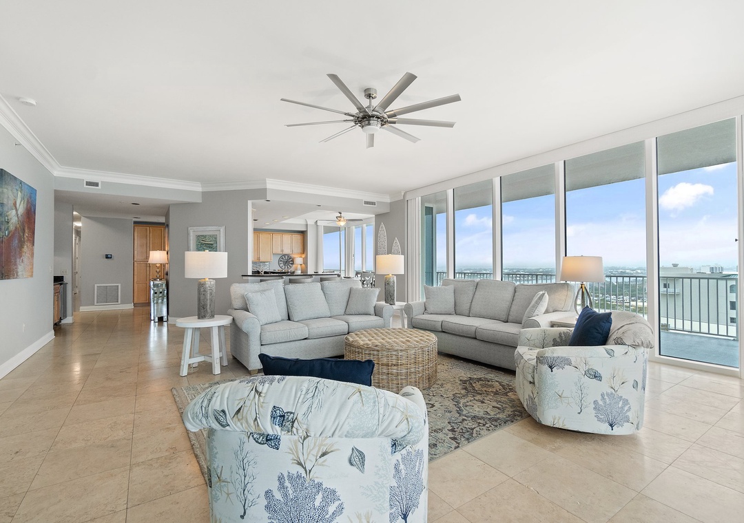 This spectacular unit offers almost 3500 square feet of luxury in an open and spacious floor plan, while a delightful blend of beach-chic meets coastal contemporary decor create a space that's both sophisticated and cozy.