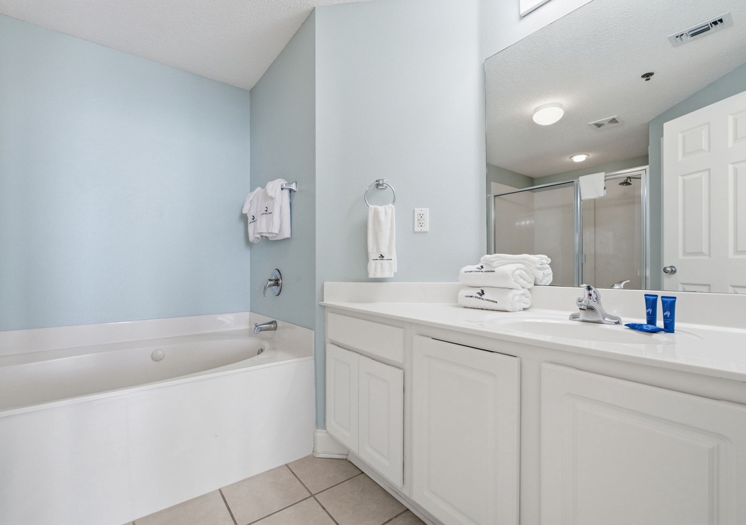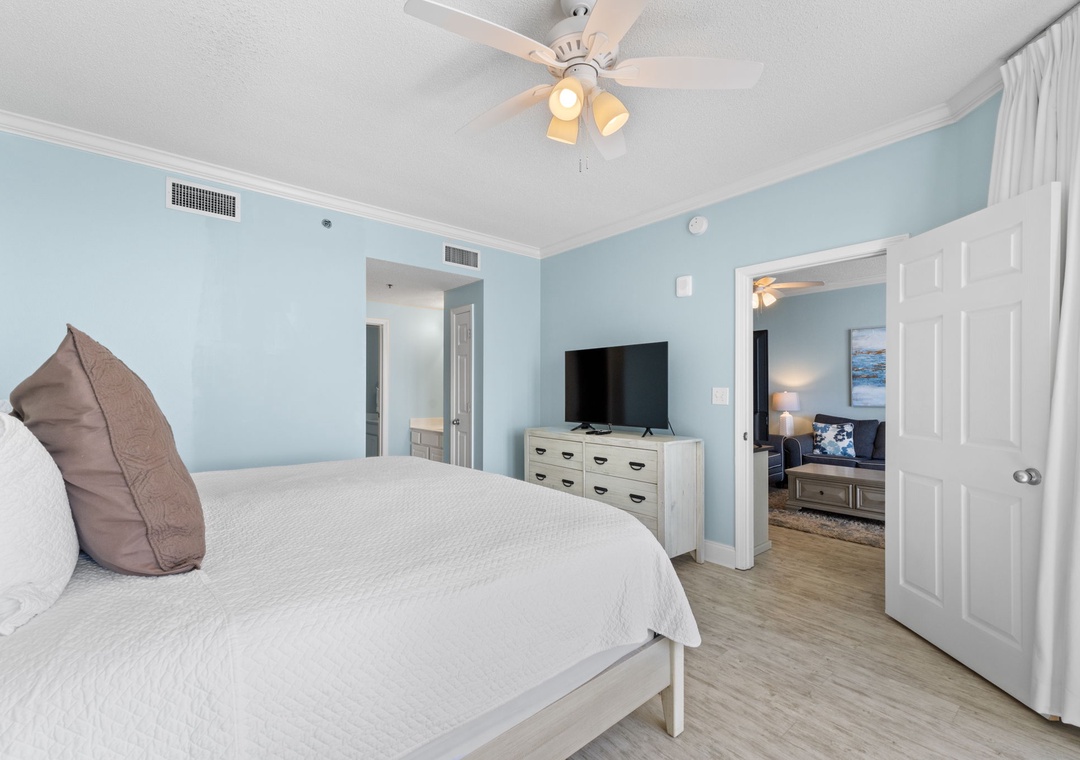 The fully stocked kitchen offers everything you need to prepare meals with ease, while the open living and dining area provides plenty of space to relax and enjoy time together. Each bedroom is thoughtfully appointed with premium linens, ensuring a restful night’s sleep after a day in the sun.