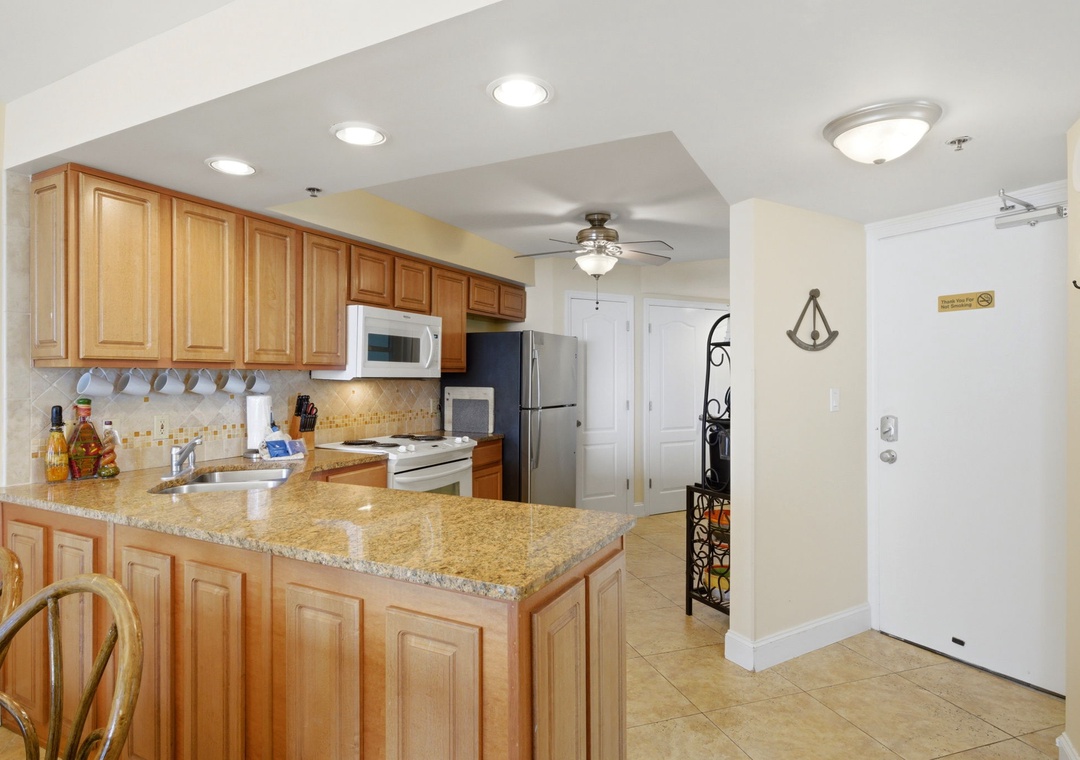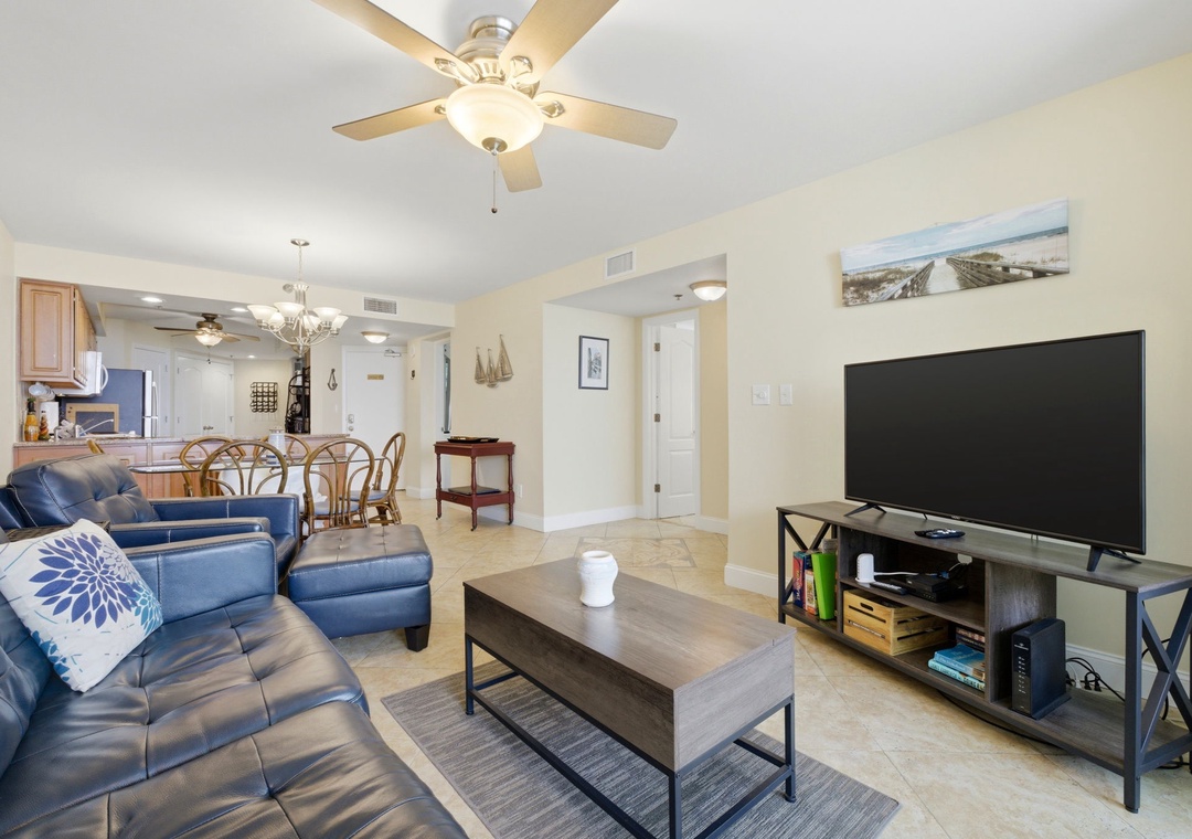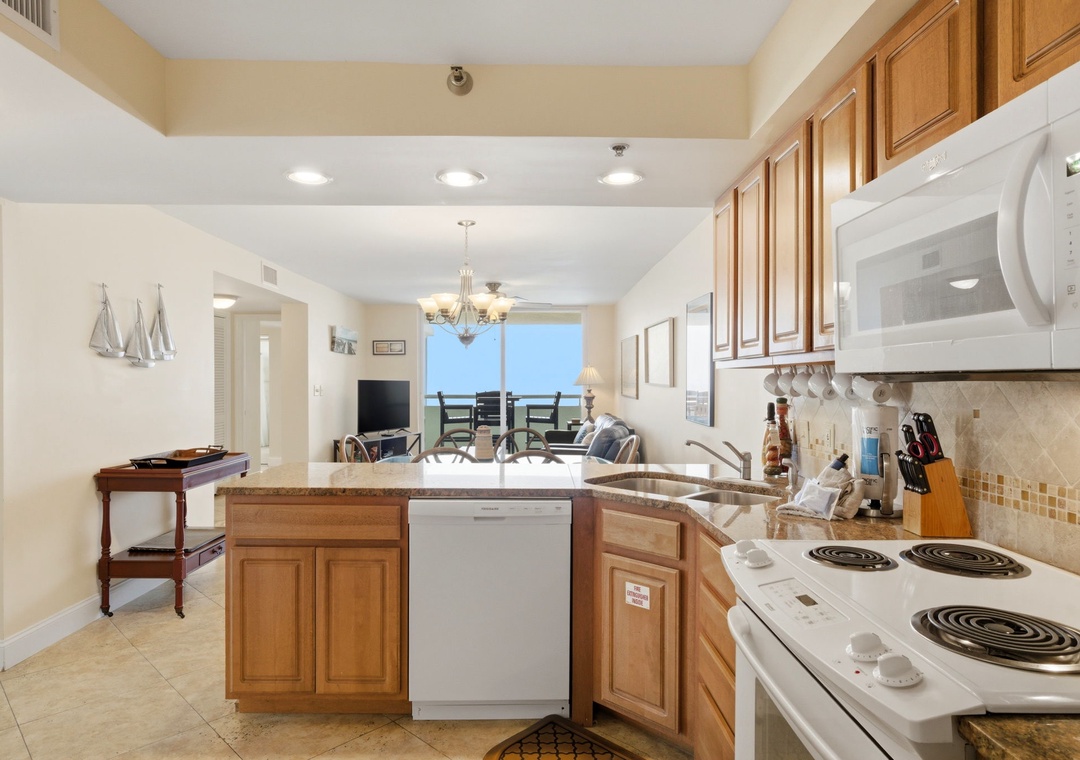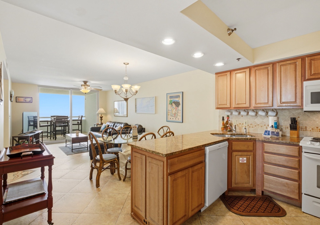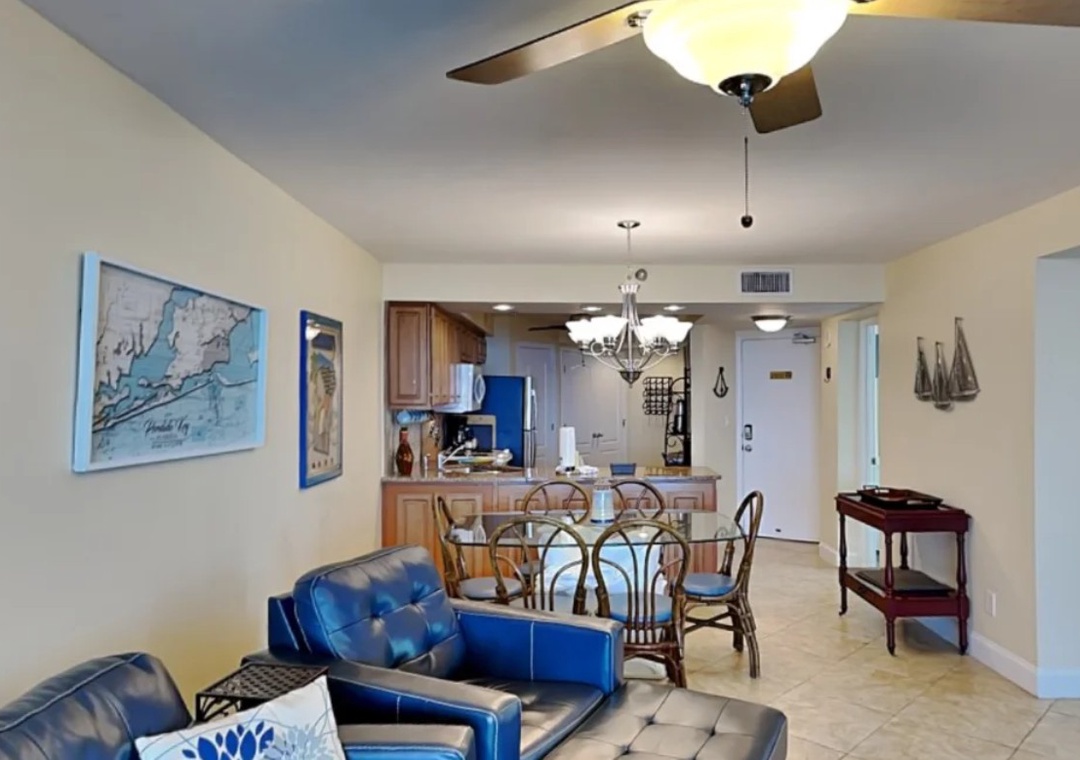 Inside, you’ll find a fully equipped kitchen with everything you need to prepare meals, a bright and open living area, and a private balcony where you can soak in sweeping Gulf views. The condo also features an in-unit washer and dryer, making longer stays a breeze.