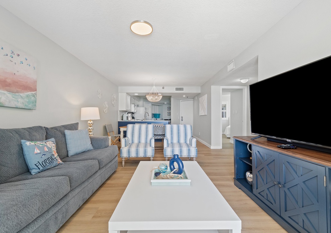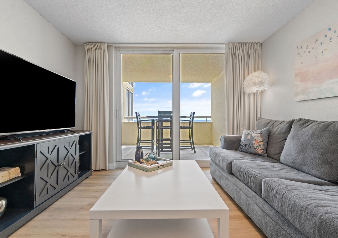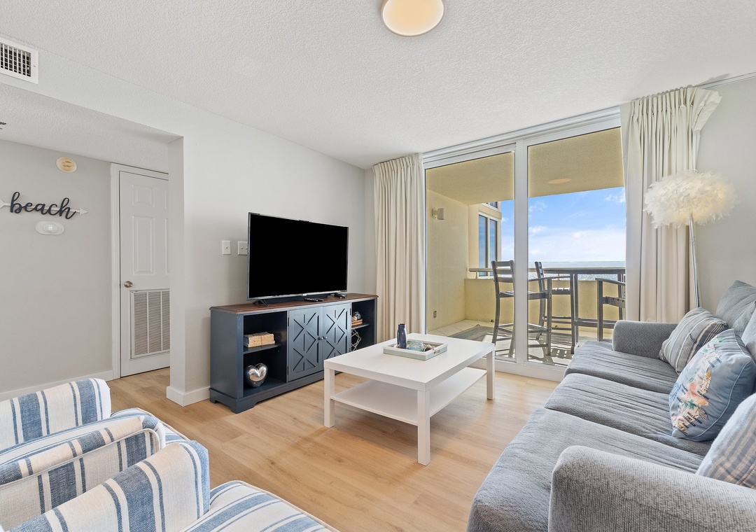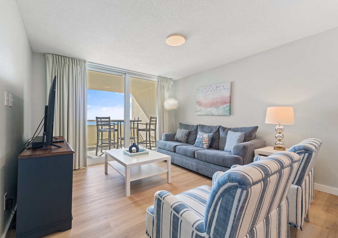 You will feel a warm welcome when you walk through the door and see the blue horizon waiting outside the floor-to-ceiling sliding glass doors. This beautiful condo feels like your very own comfortable home away from home and this balcony offers a living postcard view.