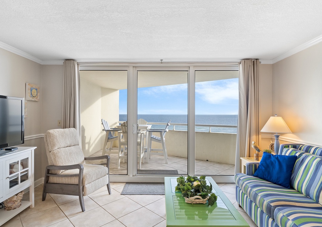 Indulge in the splendor of coastal living when you stay in this charming 5th floor, 1 bedroom, 1.5 bath unit at Perdido Sun! Situated on an immaculate stretch of the Gulf Coast, this complex pairs relaxation and recreation, offering the best in beachfront living and resort amenities! This spacious property offers an open concept layout, custom finishes, luxurious appointments, wifi throughout and much more! The living area boasts plush furnishings, a new high end flat screen TV, and beachfront balcony access with incredible views! An outdoor table with ample seating will allow you to sip your morning coffee or savor your favorite glass of wine while basking in the delightful serenity of Gulf Coast living!