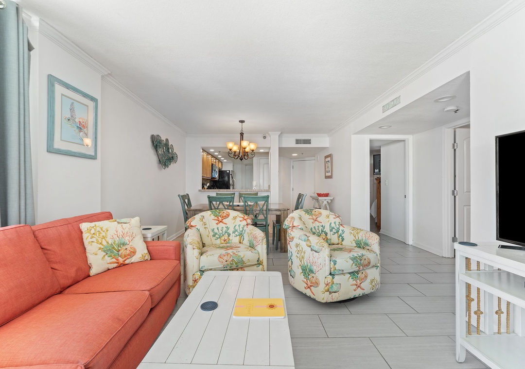 The condo is on the 9th floor with a large deck and ocean view. Beds are comfortable and condo is furnished nicely. We will definitely stay here again.- Posted: 7/22/2020