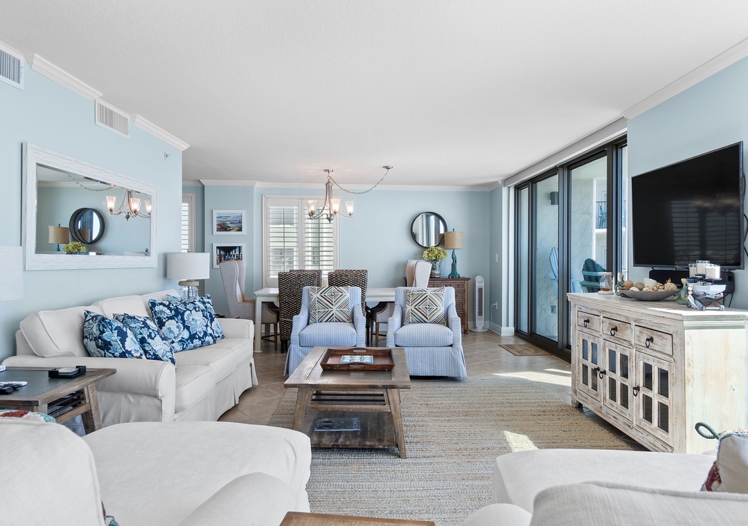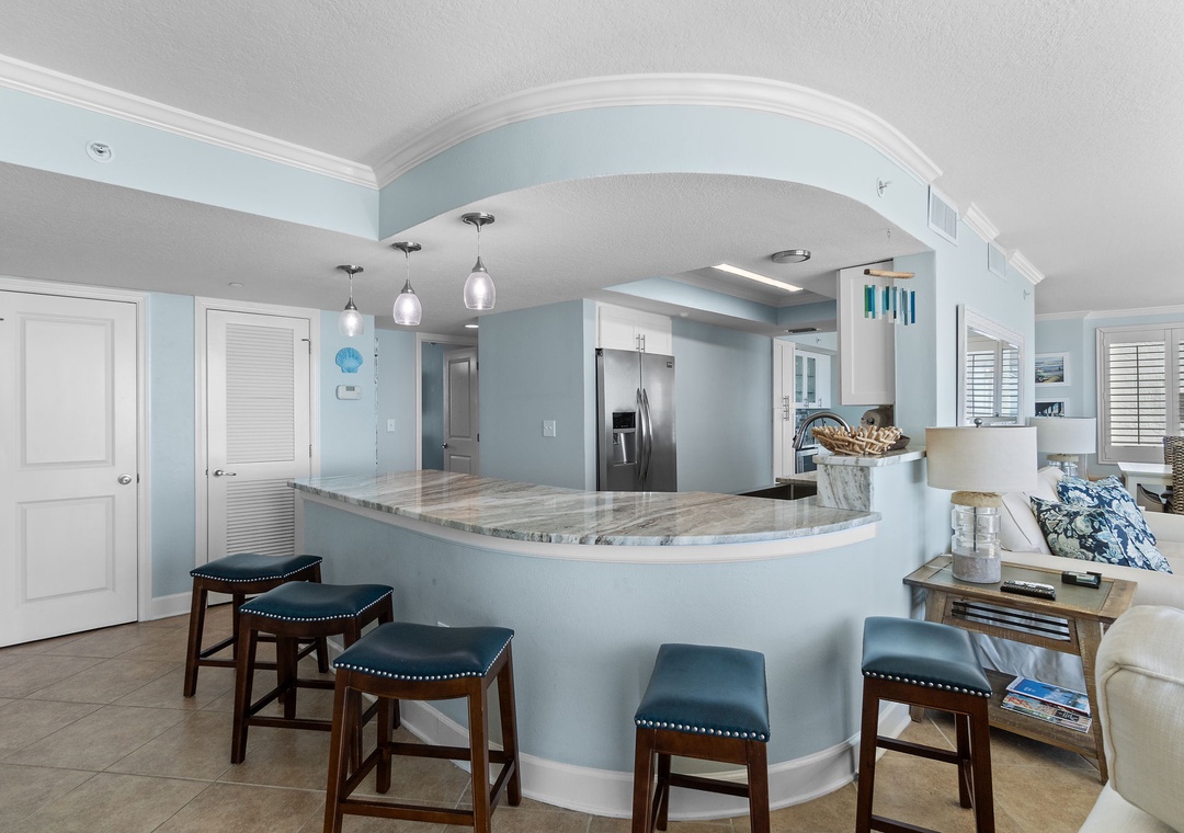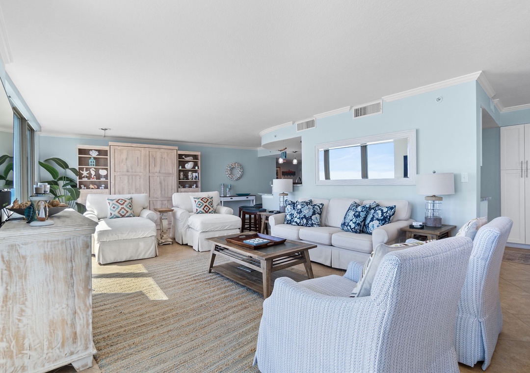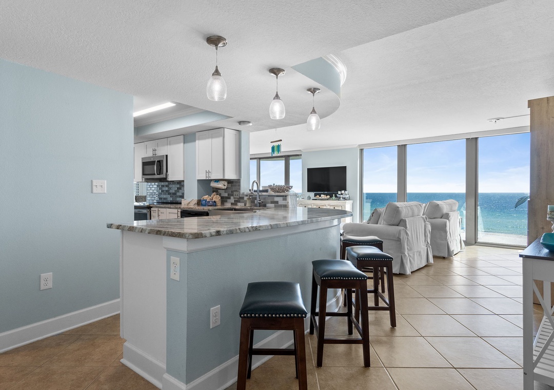We absolutely loved the decor in the condo, the sofas were comfy, there was plenty of pots, pans and the kitchen had everything we needed. The separate bar area was nice as well. The balcony was a little over crowded, but the view was beautiful. We would definitely stay again.- Reviewed On: 4/5/2024