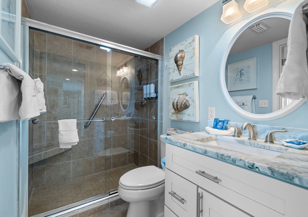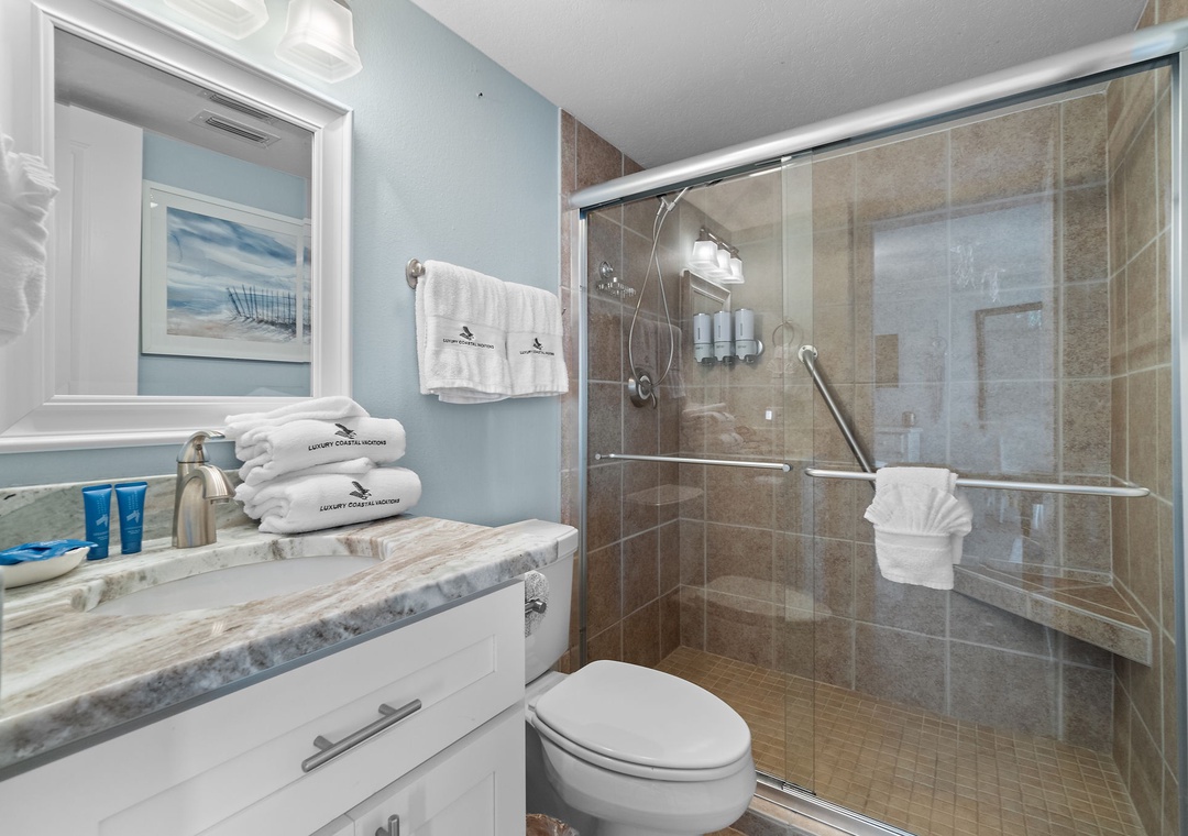 With premium mattresses and luxury linens in the bedrooms and baths, you'll definitely catch up on some much needed rest and relaxation during your vacation. 3 MASTER BEDROOMS each offering king size beds and adjoining baths that include a walk in shower. The living room sofa can be converted into a standard sleeper sofa plus a queen size murphy bed allowing comfortable sleeping accommodations for up to 11!