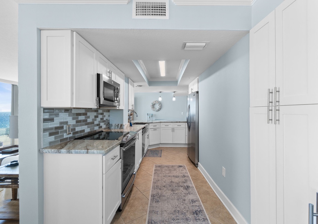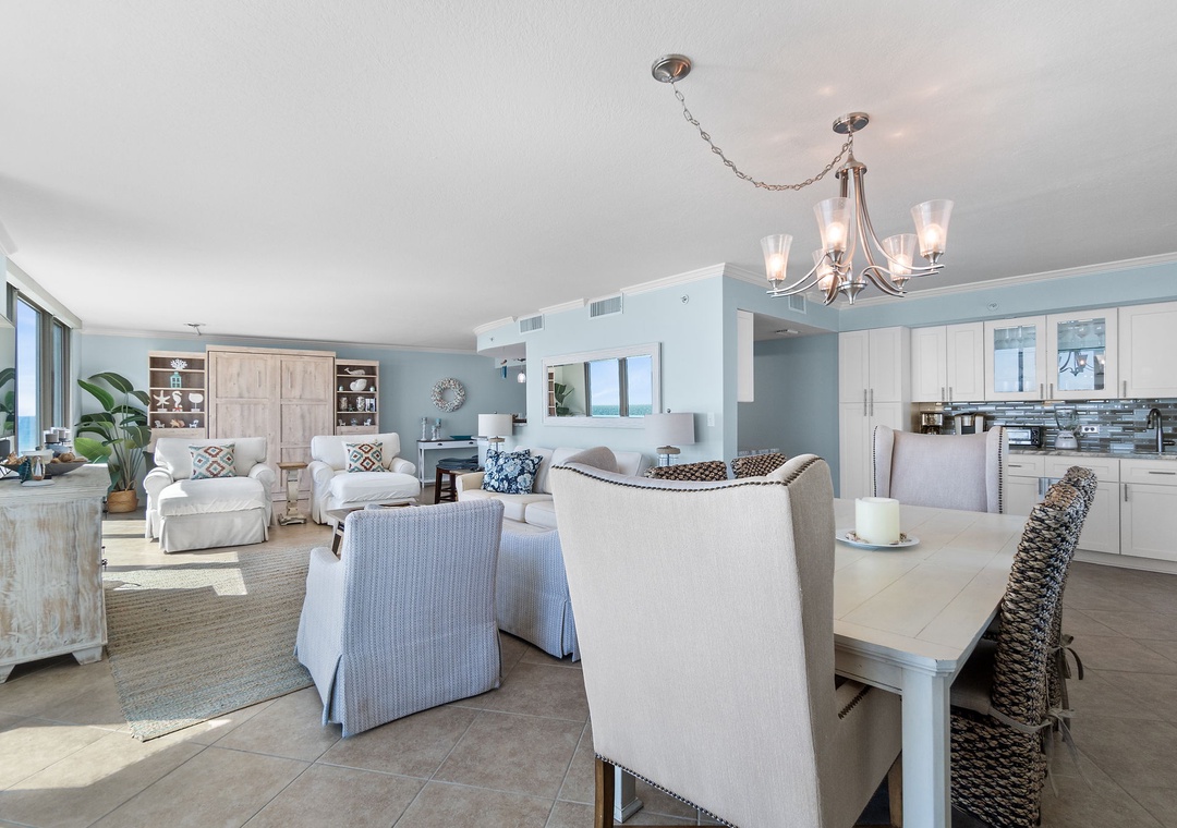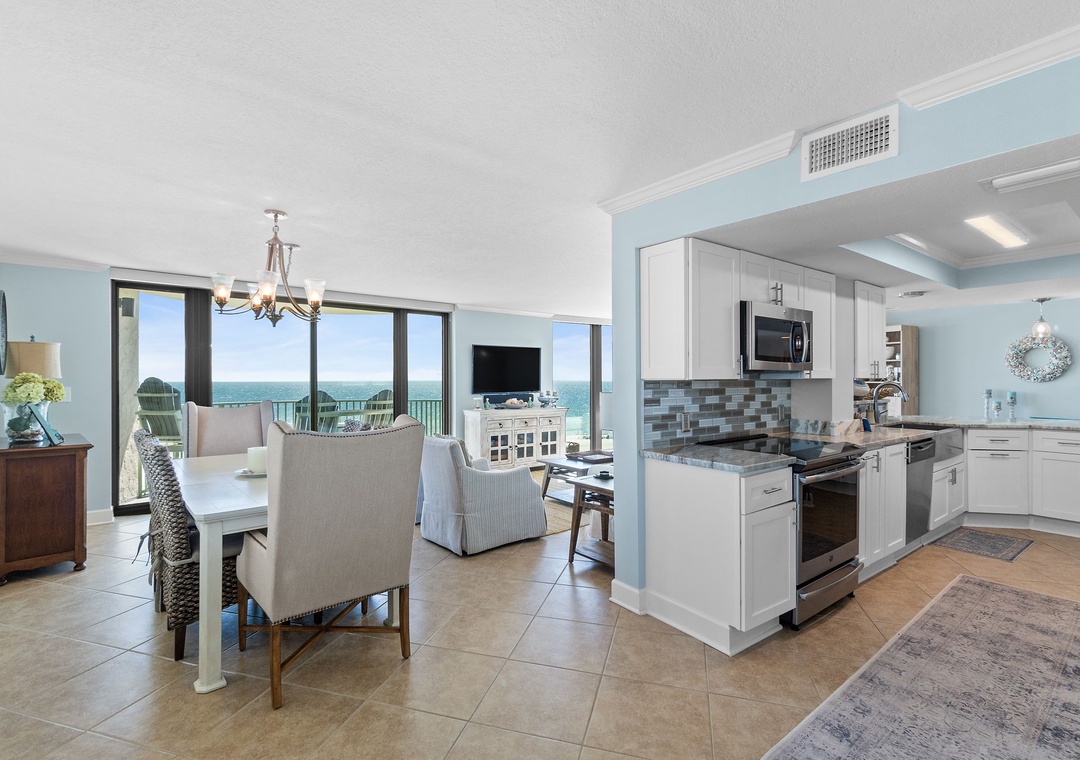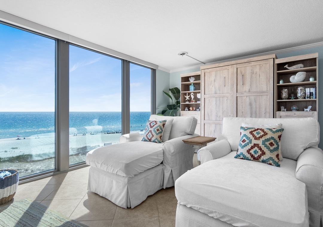 You'll never want to leave the beach once you stay in this beautifully furnished Perdido Towers, 3 Bedroom, 3 bath luxury condo! This unit offers 1800 square feet of sophistication and comfort. The open concept layout gives a spacious and airy feel, with floor-to-ceiling windows creating the most amazing 360 degree views of the gulf from every angle. The gulf facing balcony offers the most BEAUTIFUL views. The gourmet kitchen will impress even the most seasoned chef, offering professional-grade stainless appliances. The dining area features a wet bar making entertaining a breeze!
