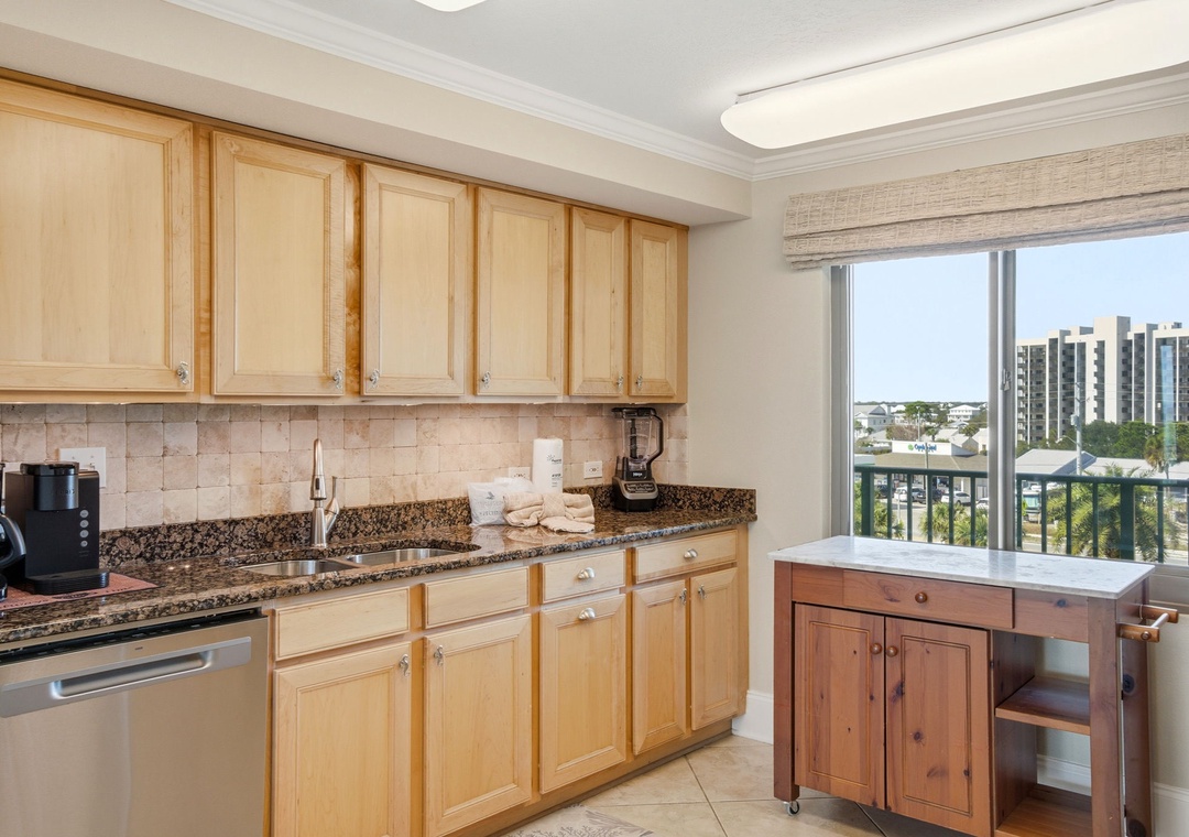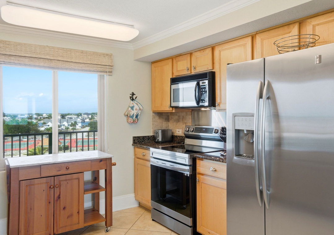 This unit was as shown in pics and was very spacious. I was skeptical about the kitchen but there was plenty of counter space and storage! The view was breathtaking and we saw dolphins everyday.from Steens, MS - Reviewed On: 9/6/2021
