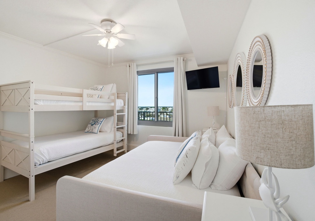 After a day of sun and sand, retreat upstairs to the master bedroom with a luxurious king-size bed, floor-to-ceiling windows, and plenty of closet space. The second bedroom offers a plush queen-size bed, and both bedrooms come with their own TVs for winding down in comfort. This condo accommodates up to six guests, with a sofa bed in the living room and the convenience of a washer and dryer. Whether you're enjoying the sun-filled balcony or relaxing in the serene bedrooms, Perdido Towers East 502 is the perfect home away from home for your dream beach getaway.