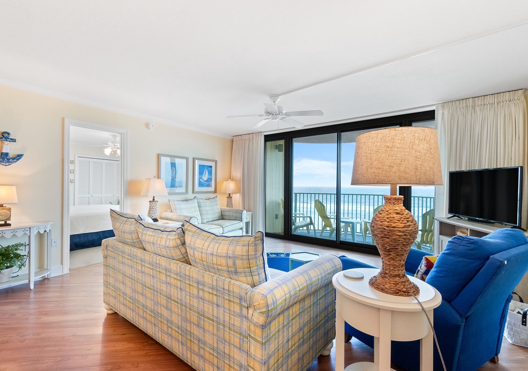 Perdido Towers East 503 is a stunning beachfront retreat in the heart of Perdido Key, FL, offering the perfect blend of comfort and coastal luxury. This 2-bedroom, 2-bathroom unit accommodates up to six guests, making it an ideal choice for families or small groups. The primary suite features a plush king bed and private access to the beachfront balcony, where you can soak in panoramic views of the Gulf. The second bedroom is outfitted with two twin beds, and the living room includes a queen sleeper sofa for additional sleeping options. A fully equipped kitchen and open-concept living space make it easy to relax and enjoy your time by the beach.