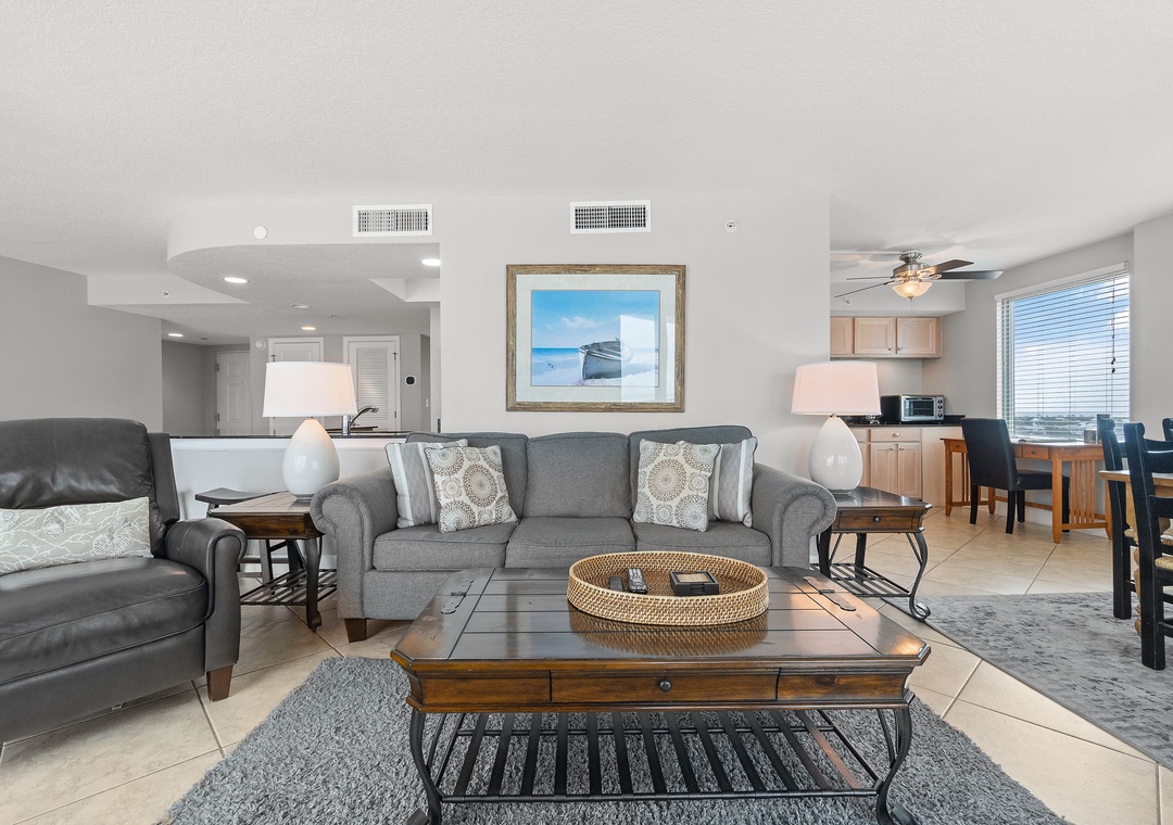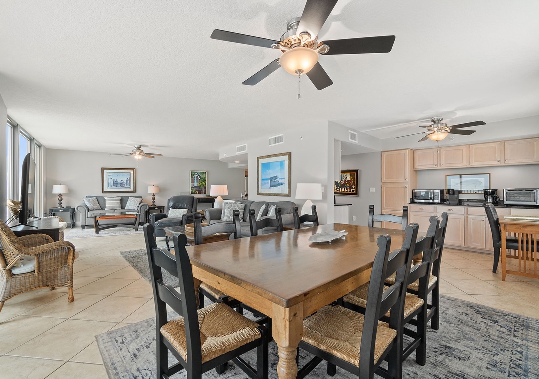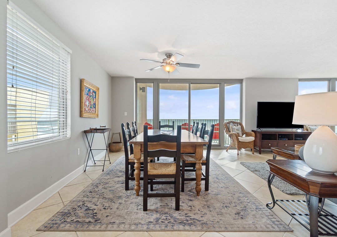 Experience paradise in this stunning 3-bedroom, 3-bath corner unit on the 8th floor of Perdido Towers in Perdido Key, Florida. This exclusive, low-density resort offers just 33 units, allowing you to enjoy the tranquility of uncrowded beaches and serene surroundings. Situated along a pristine stretch of the Gulf Coast, Perdido Towers combines luxury and privacy with upscale amenities you'll love. From the moment you step into the unit via your private elevator entrance, you'll be greeted by floor-to-ceiling windows that showcase breathtaking, unobstructed views of the Gulf’s shimmering emerald waters and white sandy beaches. The spacious living area, with new designer furnishings and a sleeper sofa, offers ample seating for the whole family, while the dining space accommodates up to 12 guests.