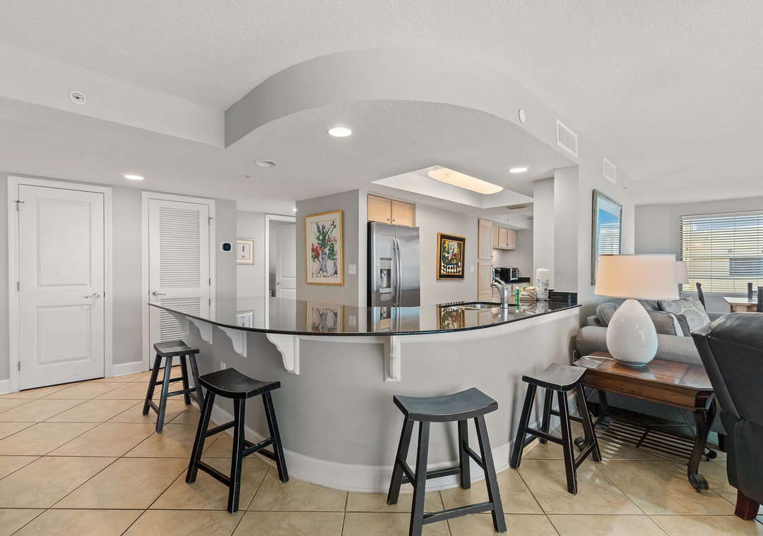 We've been vacationing on the Gulf for many years and this is by far the best unit we've ever rented. Very well equipped with a stocked kitchen, nice appliances, ice machine, updated bathrooms, etc. And as good as all this was, it still couldn't beat the incredible views. The management company was easy to work with and very proactive in making sure we had a good stay. Only complaint we might have would be the entry lobby and the elevators. The lobby is small and it was a little bit difficult to move around with carts and multiple people. The elevator on this side of the building was having issues the first day but the property management staff had it resolved within 24 hours. Overall, the complex is great because there are not hundreds of units so the beach and pool were never crowded. If we return to Perdido, we will definitely try to get this unit again.- Posted: 7/4/2012
