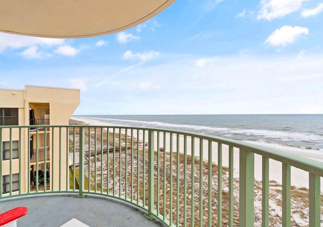 The view through the living room floor-to-ceiling windows is fantastic. It was the reason we booked the condo. We have never stayed in Perdido Key. We usually stay on Pensacola or Navarre Beach, but when we saw the view this condo provided and the price, we felt we had to go there this year. We are an older couple who spend more time looking at the beach then we do on the beach, so views are more important to us than access. However, the access is a simple process and takes only one or two minutes from the time you step out of the condo and step onto the beach. We stayed here in early November and rarely did we wait for the elevator. Only once or twice did we ride the elevator with another party during the week we were there. The elevator door is less than three feet from the condo front door, but no one ever got on or off the eighth floor with us. The parking lot is probably ten yards from the elevator door, so we had very quick access to our car. The amount of space is incredible. The living room is huge, at least compared to our one at home. The kitchen is roomy and has the same views as the living room. The MBR is big enough and has the same floor-to-ceiling windows that the living room has. The balcony was comfortable, but not big. The washer and dryer came in real handy. We would stay in this condo again.- Posted: 11/29/2020