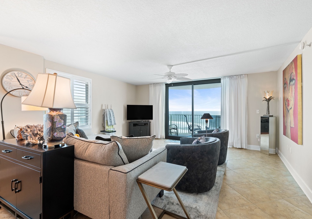 Welcome to Perdido Towers West 1005, a 2-bedroom, 2-bathroom beachfront condo in beautiful Perdido Key, Florida. This luxurious retreat features two king beds, offering ultimate comfort for couples or families. Step onto the private beachfront balcony, accessible from both the living room and the primary bedroom, and enjoy panoramic Gulf views that make every moment unforgettable. The open-concept living area and fully equipped kitchen provide the perfect space for relaxation and home-cooked meals after a day in the sun.