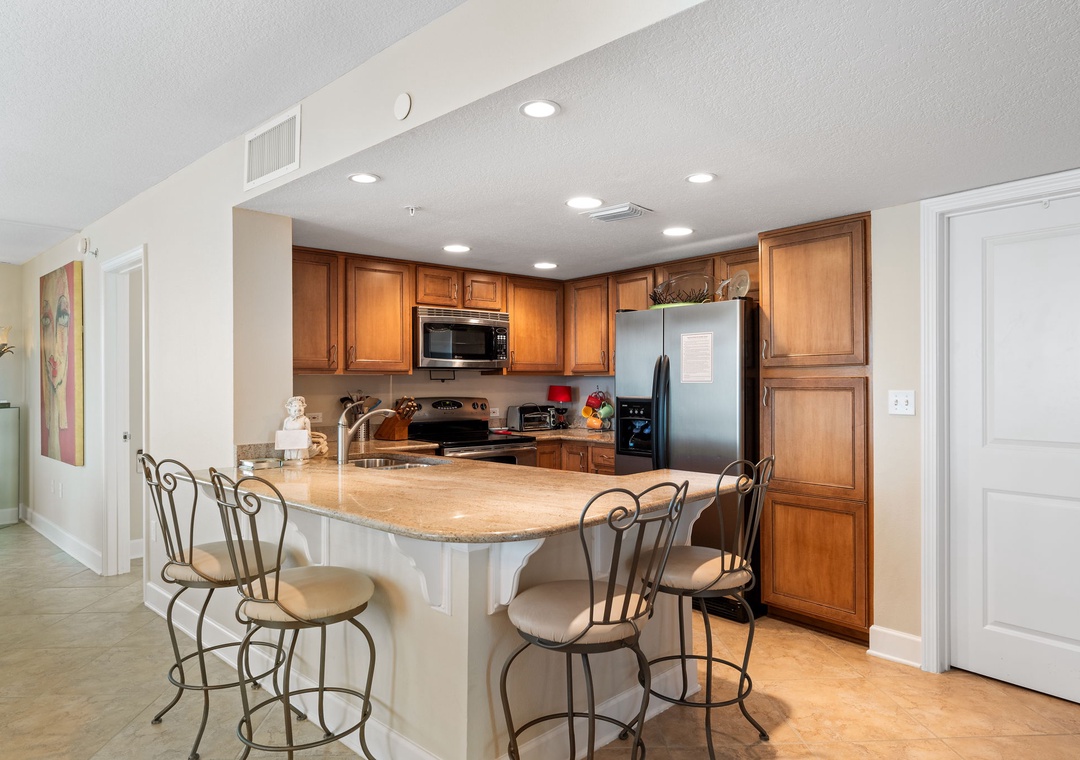 Beautiful condo, wonderfully stocked with pots, pans, glasses, utensils, cards and games. Everything was wonderful. Everything was wonderful. The only problem we had was our code would not work to pool area to get to beach we had to go through the office/workout area each time.- Reviewed On: 5/26/2025