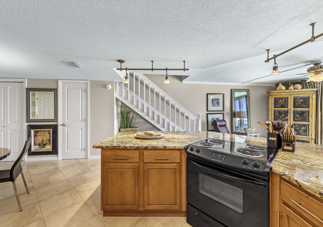 This condo is decorated beautifully. From the ceiling to the floors and everything in between! The weather was great but we did have seaweed. It surprised us that they did not clean the seaweed off the beach. The umbrellas were spaced out really well and the beach was not crowded.- Reviewed On: 5/28/2019