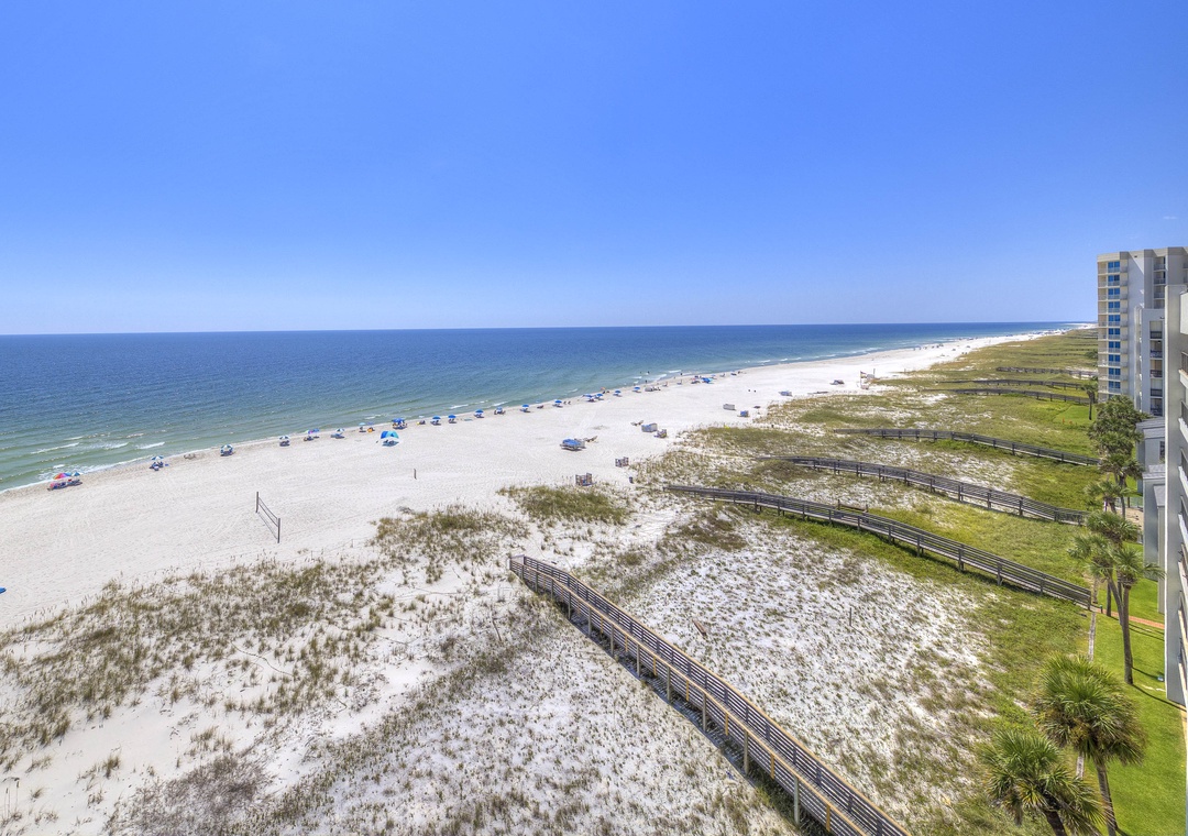 Just spent a week in this great condo directly on the beach in Perdido Key -- fabulous beach that is not over crowded; super soft sand. Loved this location as it is not as crowded as Orange Beach/Gulf Shores/Pensacola - but close enough to get to either location within minutes. The condo is beautifully decorated and has everything you need. Super comfortable beds and very quiet at night - you do not hear neighbors below you or across from you. Great restaurants in the area and very close! I would highly recommend this complex and unit. A good time was had by all.- Reviewed On: 7/17/2016