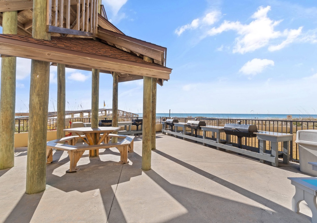 Inside, you'll find a cozy and well-appointed condo with all the amenities you need for a memorable vacation. Relax and unwind in the indoor hot tubs or rejuvenate in the sauna after a day of sun and sand. Stay active in the fitness center or take a refreshing dip in the community pool. And for those who love to grill, there are charcoal BBQ grills available for your use.
