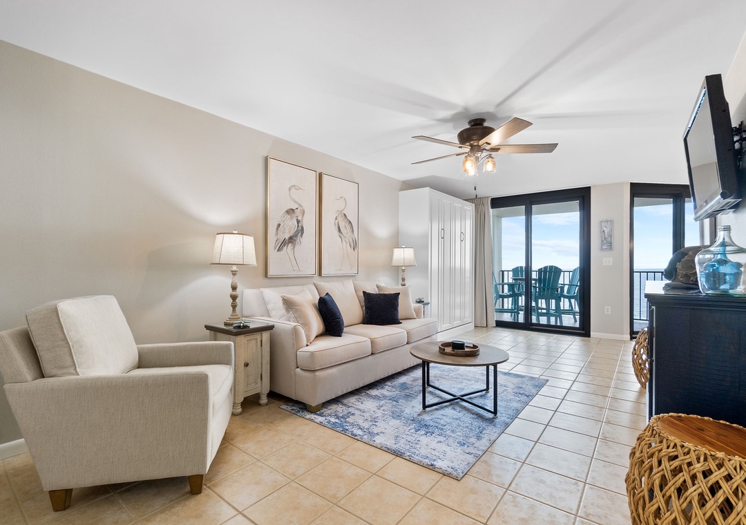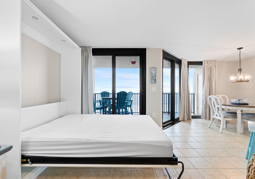 The unit is furnished with a king bed in the bedroom, a convenient queen sleeper sofa and queen murphy bed in the living area accommodating up to six guests comfortably. Step out onto the private balcony to savor stunning Gulf views and the soothing sounds of the ocean. Guests can enjoy a variety of amenities including a sparkling Gulf front community pool, a well-equipped fitness center, and an inviting indoor pool with a hot tub, making Phoenix 7 907 an ideal coastal retreat.