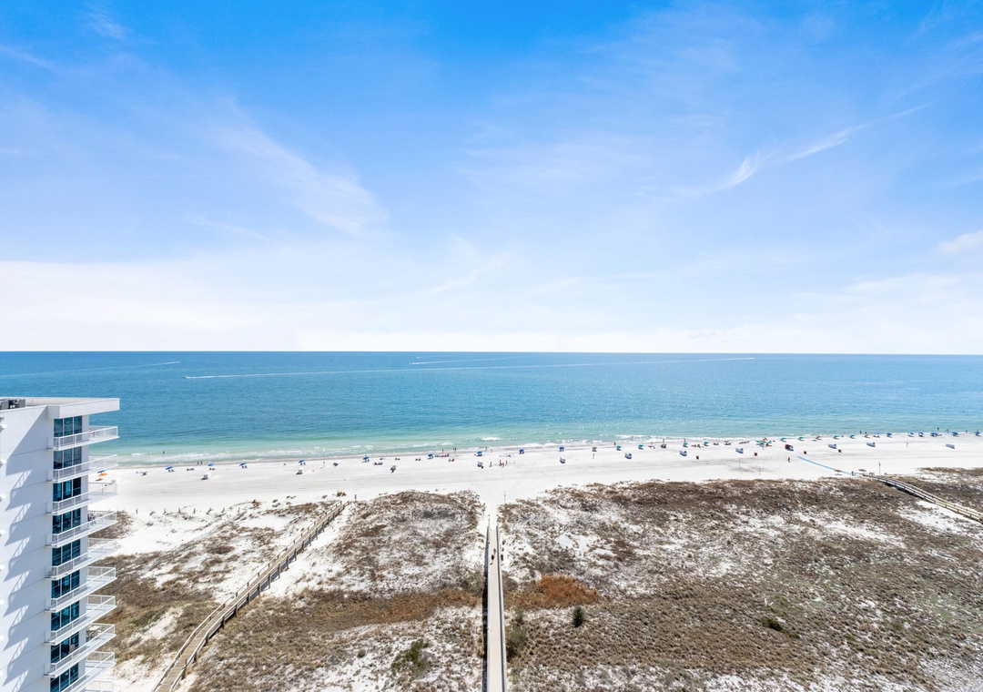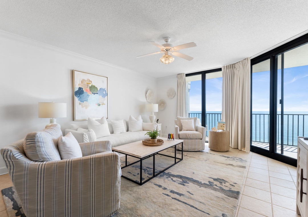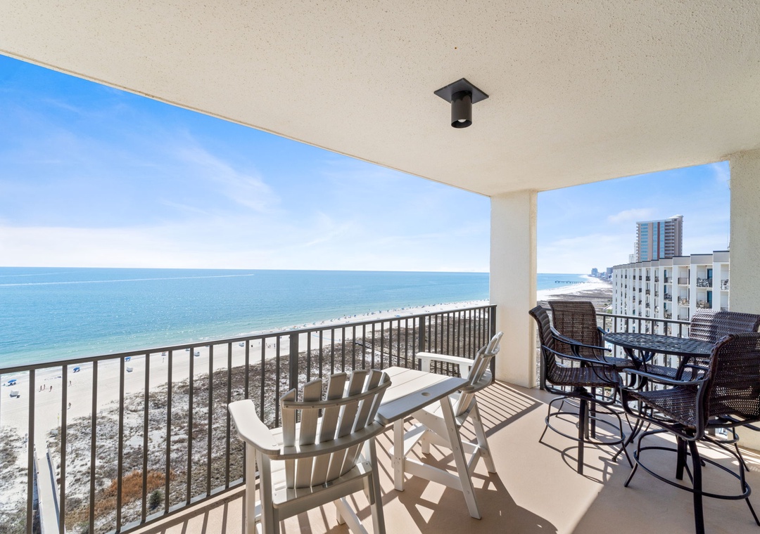Inside, the spacious condo features stylish décor and comfortable furnishings throughout. The living room invites relaxation with ample seating and direct access to a large covered balcony overlooking the beach—ideal for savoring your morning coffee as the sun rises over the Gulf. The fully equipped kitchen boasts upgraded appliances for preparing meals with ease. After a day of fun, retreat to one of the three well-appointed bedrooms, each offering premium mattresses and luxurious linens for ultimate relaxation. The master suite's spa-like bathroom includes a walk-in glass and tile shower and plush oversized towels, ensuring you feel pampered. Plus, you’re just minutes away from Orange Beach’s best dining, shopping, and nightlife!