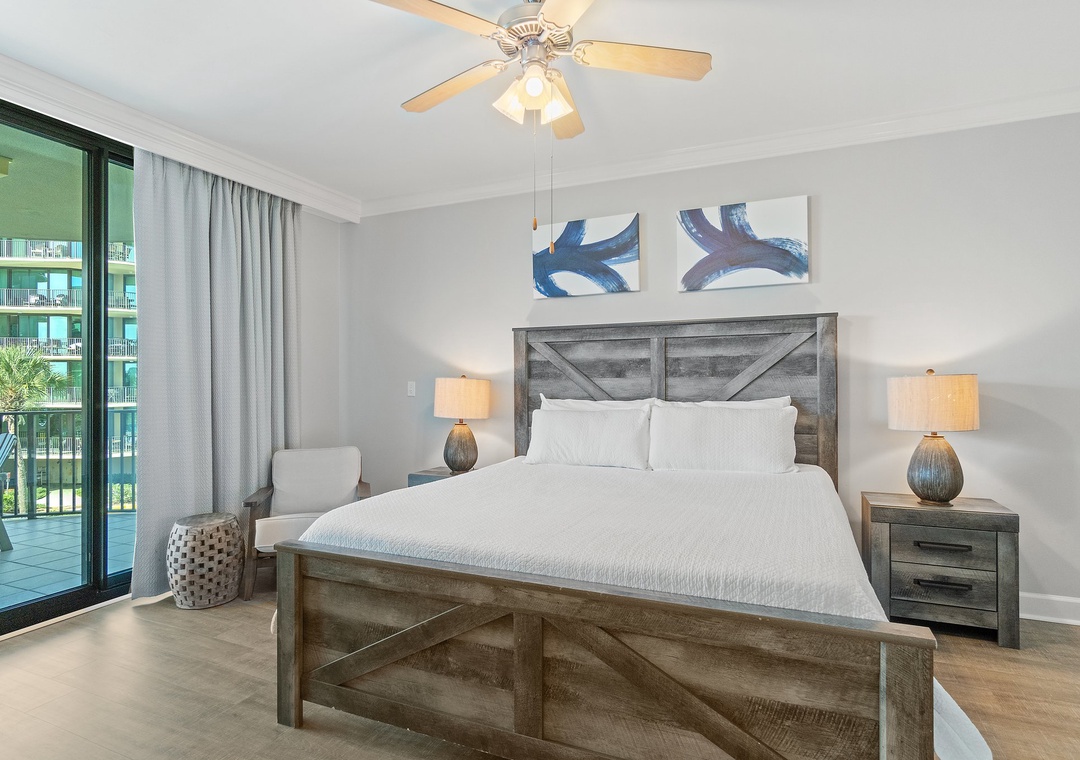 Experience your dream vacation in our 3-bed, 3-bath unit at Phoenix on the Bay, a sought-after resort on Terry Cove in Orange Beach. Enjoy movie nights in the living area with designer furnishings and balcony access. The covered terrace offers Gulf Coast views for alfresco dining over the tranquil back bay. The kitchen features a smooth cooktop, custom tile backsplash, and a wet bar with an ice maker. The three bedrooms, each with premium mattresses and high-end bedding, ensure quality rest. The master suite includes a king bed, balcony access, and a luxurious master bath with a jacuzzi tub. Indulge in comfort and unforgettable coastal retreat moments!