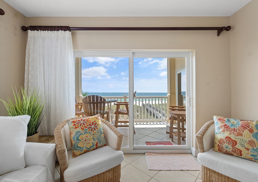 Hi Charles! Thank you for your review. We're glad to hear that you enjoyed the spacious unit and found the bathrooms convenient after a day at the beach. We apologize for the balcony situation and appreciate your understanding. We hope to welcome you back for a stay where you can fully enjoy those stunning views!