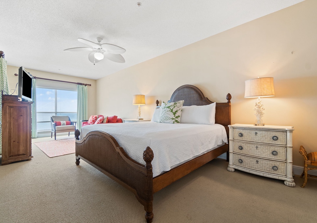 Step through floor-to-ceiling sliding glass doors onto the expansive covered terrace, where comfortable seating invites you to savor a morning coffee, evening cocktail, or even a meal against the breathtaking backdrop of the Gulf. The fully equipped kitchen provides all you need to craft delicious meals, featuring full-sized appliances, cookware, and utensils to inspire your inner chef. The spacious master suite is a tranquil retreat with a king bed, premium mattress, and luxurious linens, as well as an attached en-suite bathroom for added comfort.