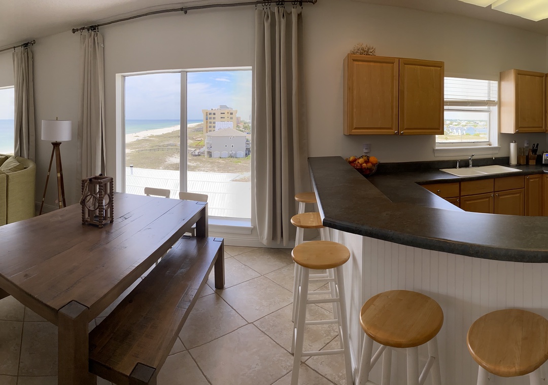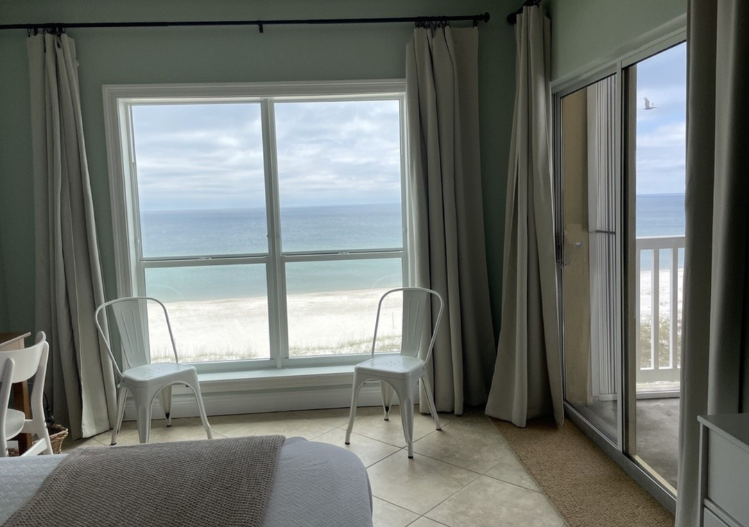 Inside, you’ll find a thoughtfully designed open-concept living space featuring upscale finishes, generous seating, and expansive floor-to-ceiling sliding glass doors that open to a spacious Gulf-front balcony. The covered terrace is perfect for morning coffee, sunset dinners, or simply unwinding to the sound of the waves while taking in the breathtaking scenery.
