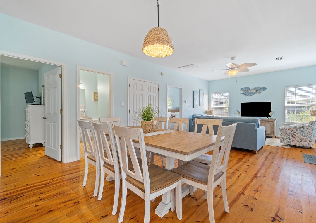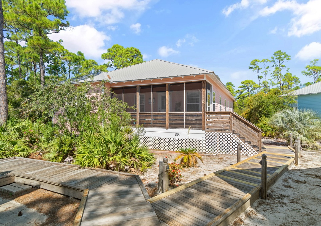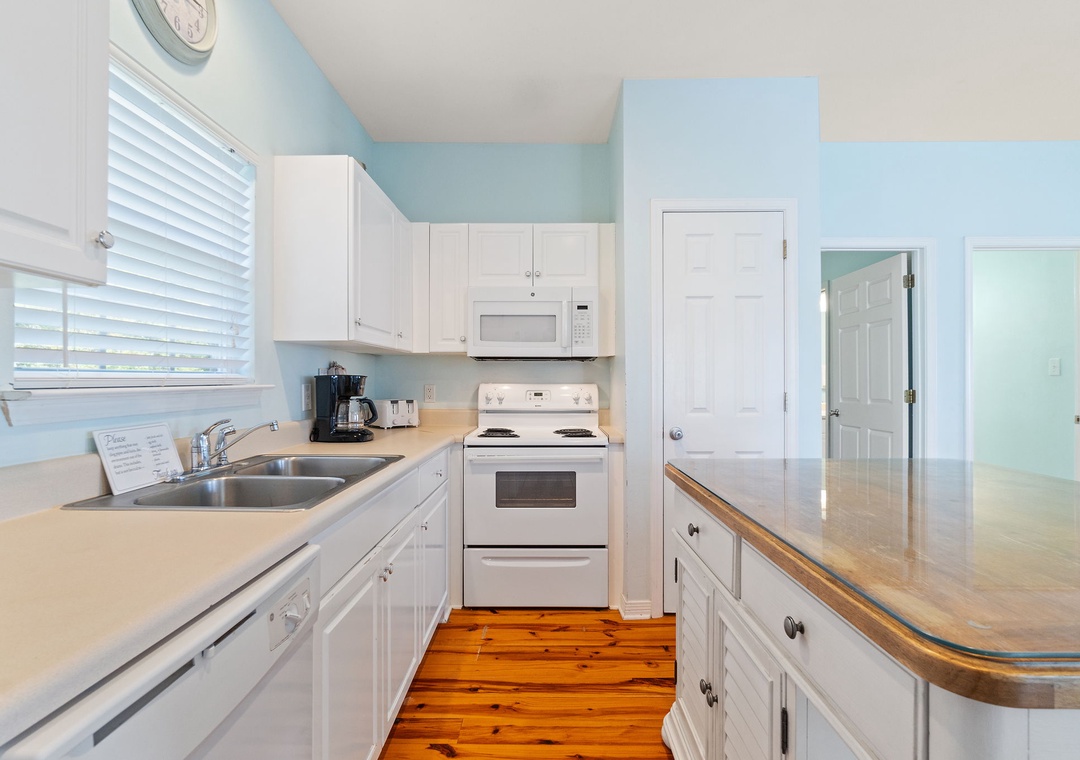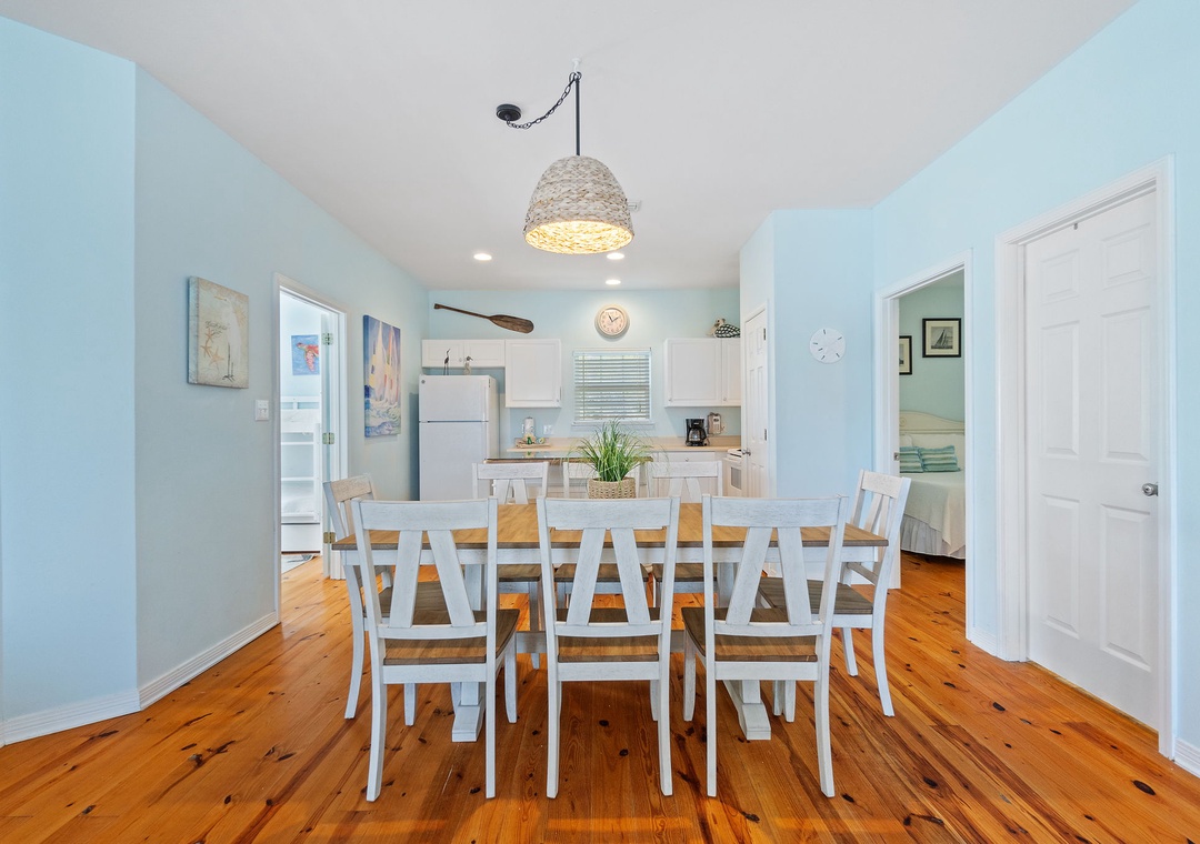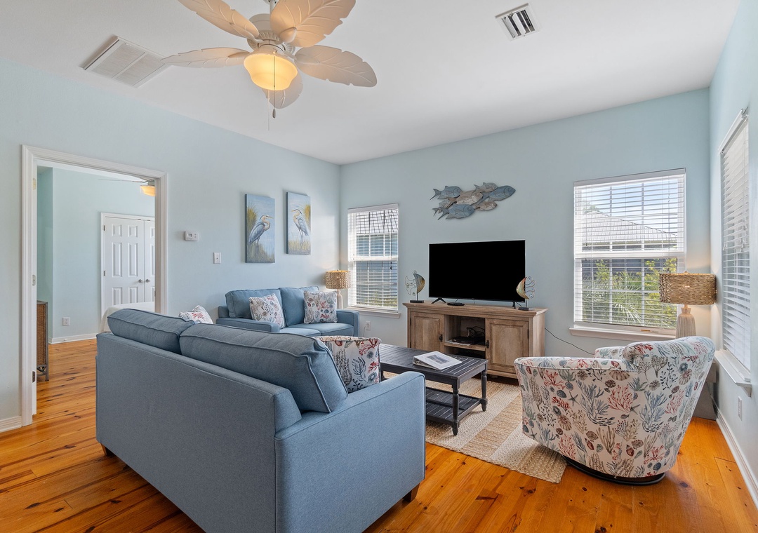 The Coral Coastal Cottage is decorated bright and cheerful, WiFi is included for your convenience. This unit offers a Queen Bed with a TV in the Master Bedroom and attached Private Bath. The first Guest Bedroom offers a Queen bed, and the second Guest Bedroom offers a two Full bunk beds with twin trundle beds! Perfect for the kids! The bedrooms are appointed with high quality mattress sets and high thread count linens, and the bathrooms are stocked with plush 100% cotton oversized towel sets. There is a full-size sleeper sofa in the living room, accommodating up to 12 guests! This unit also offers a full size washer and dryer, kitchen appliances--both large and small, cookware, and utensils. Park right in front of the cottage and no elevators to carry your things up. Just like being at home.