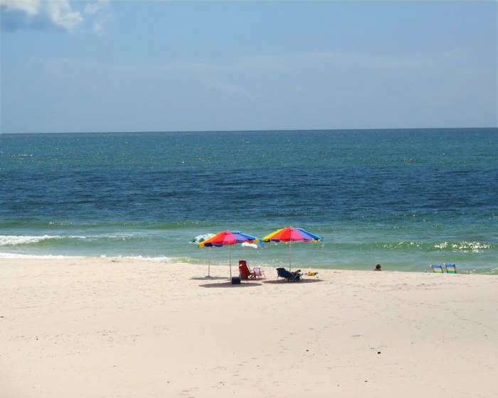 Fort Morgan is perfect for sunrise and sunset. The pool was amazing and the beach is a short 4 minute drive or 12(ish) minute walk. They have beach items in a box outside but there are no beach towels or umbrella so if you think you’ll need them make sure to bring your own.