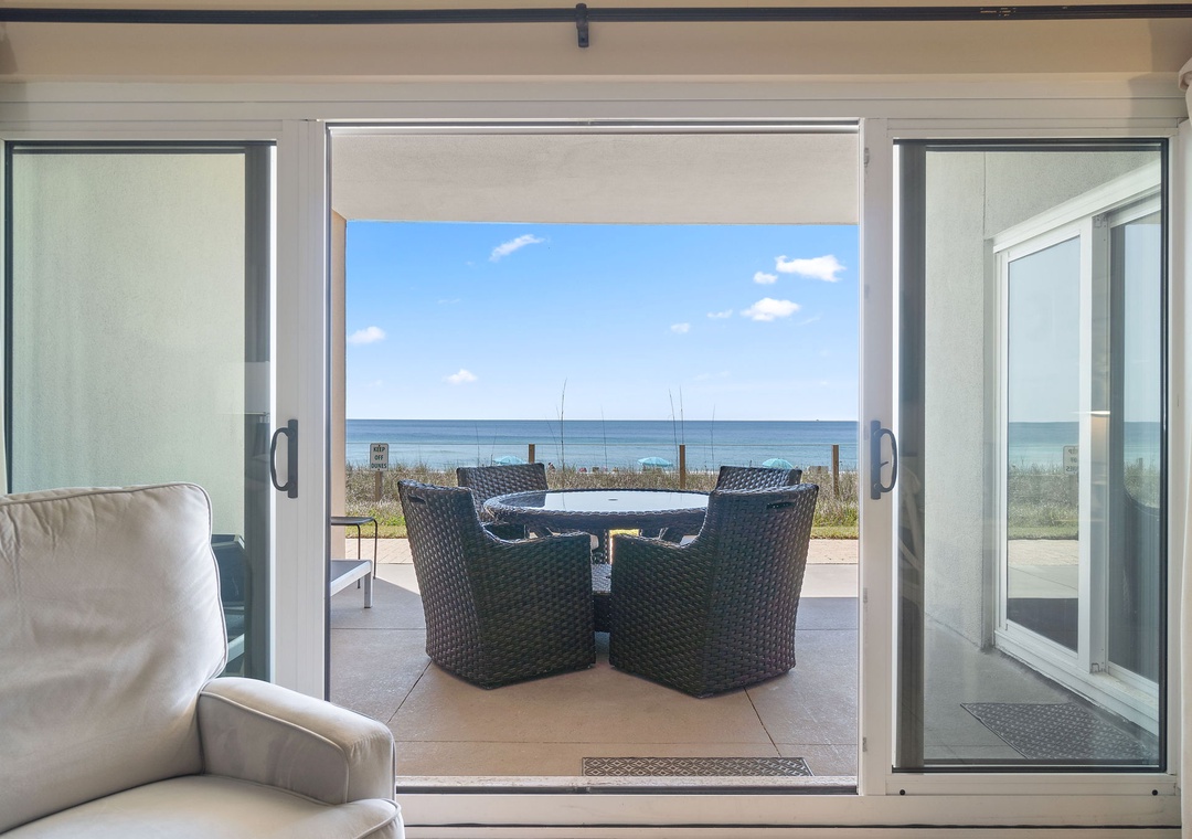 The double sliding doors open to a perfect view of the beach. Sunrise and sunset are beautiful from the patio. The condo is clean and well furnished. The location is close to good restaurants and not far from grocery store. All access points are gated, so we felt safe. This condo made for an enjoyable, memorable vacation.- Reviewed On: 11/11/2019