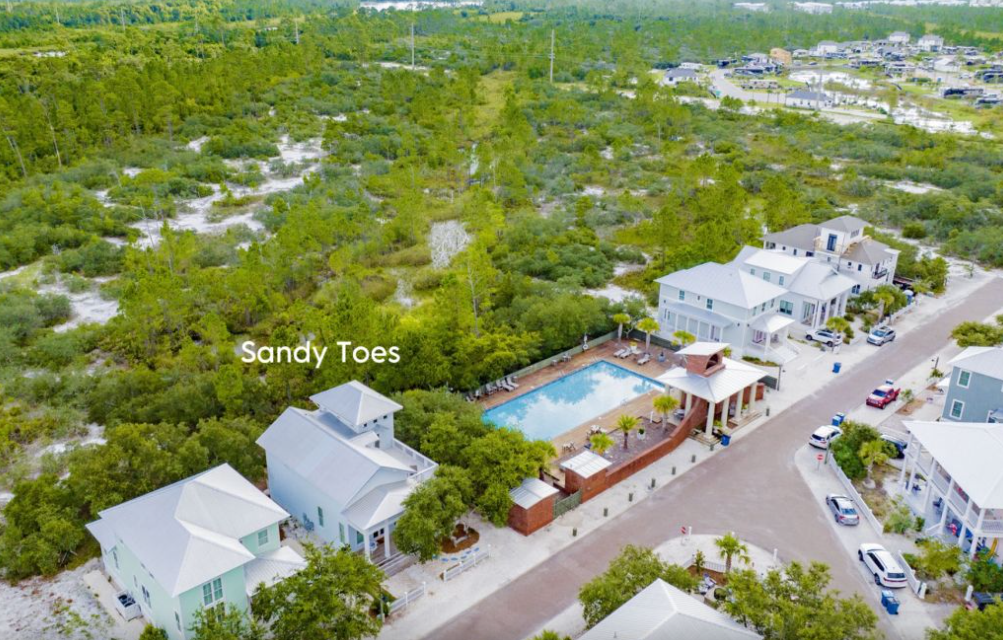 Additional highlights include a full-size washer and dryer, a half bath on the main level, and multiple covered porches ideal for sipping coffee, reading, or enjoying a sunset cocktail. With the community pool right next door and the beach just a short stroll away, Sandy Toes delivers the perfect blend of luxury, location, and laid-back coastal living.