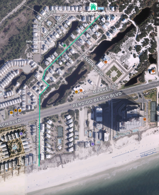 Perfectly positioned between the emerald waters of the Gulf of Mexico and the natural beauty of Gulf State Park, Sandy Toes provides guests with access to both relaxation and adventure. Enjoy private deeded beach access approximately 500 yards from the home, a community pool just steps away, and a pedestrian bridge that connects directly to Gulf State Park — home to over 25 miles of paved trails for walking, running, and biking.