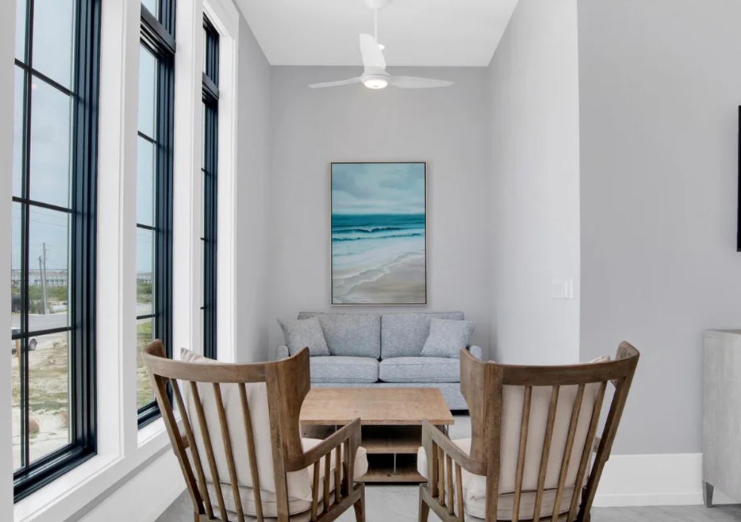 Inside, you’ll find bright, open living spaces flooded with natural light and styled for comfort and relaxation. The open-concept layout creates the perfect flow from the gourmet kitchen—fully stocked with everything you need—to the cozy living area. After a day of coastal adventures, kick back on the plush sofas and stream your favorite movie on the Smart TV, or head out to the balcony for a golden sunset over the Gulf.