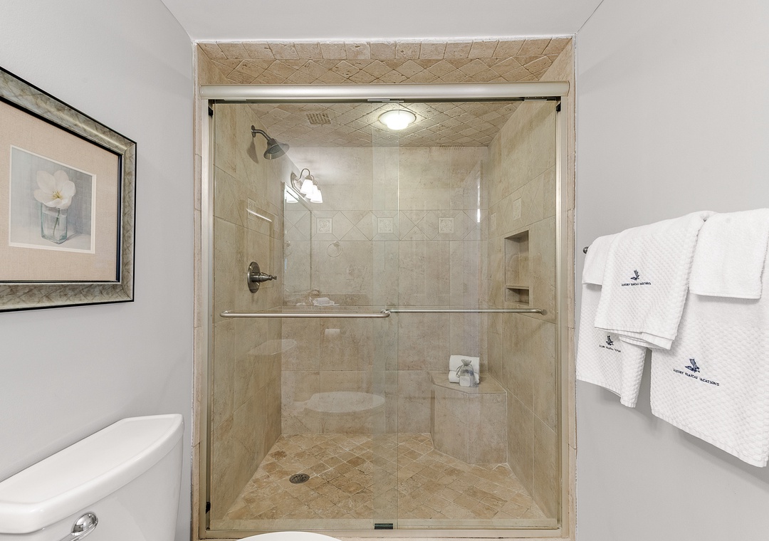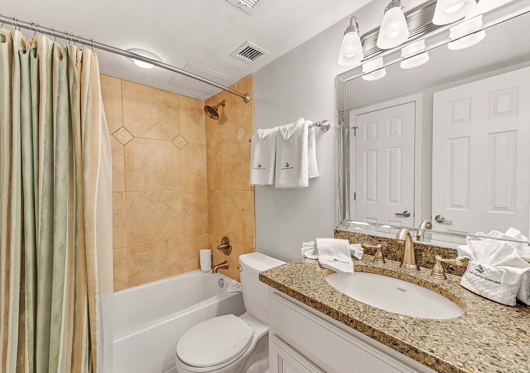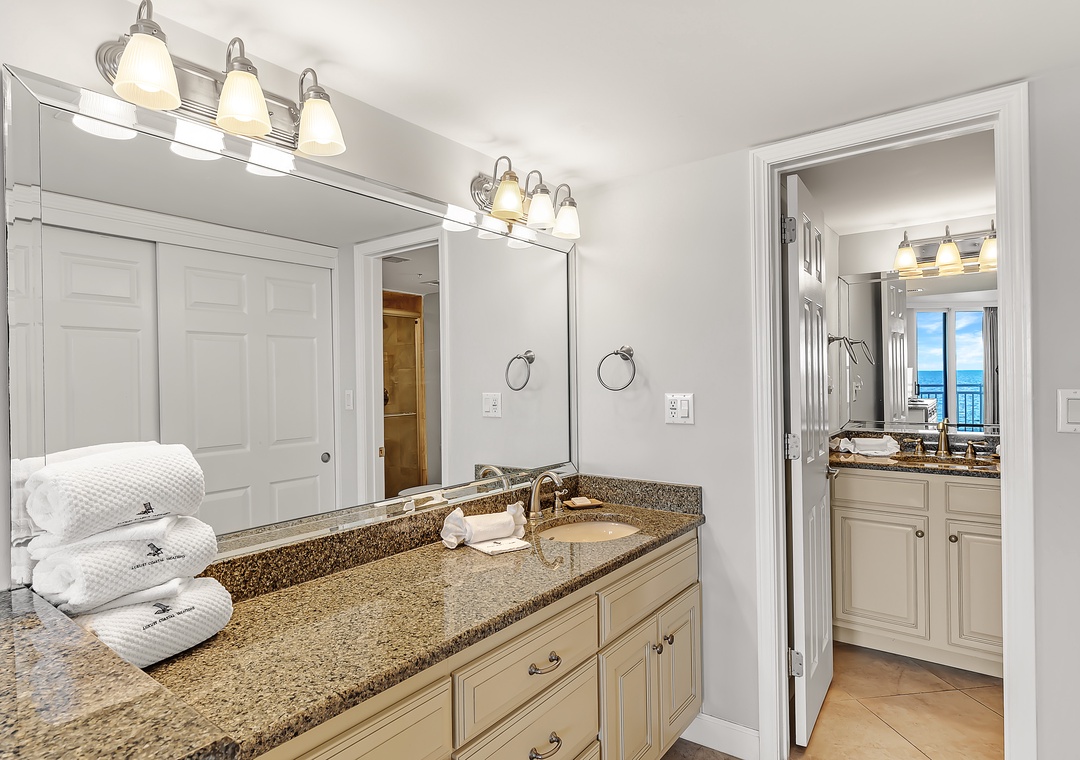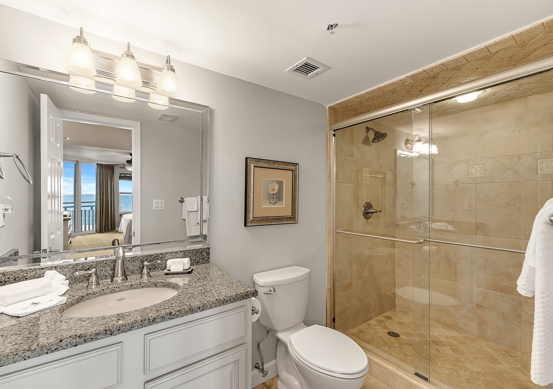 The master is the perfect restful retreat, with a plush king bed. The master bathroom features 2 granite vanities allowing for plenty of counter and cabinet space. The second bedroom is filled with queen bed and a second bath. Including the queen sleeper sofa in the living room, this unit comfortably accommodates up to 6 guests!