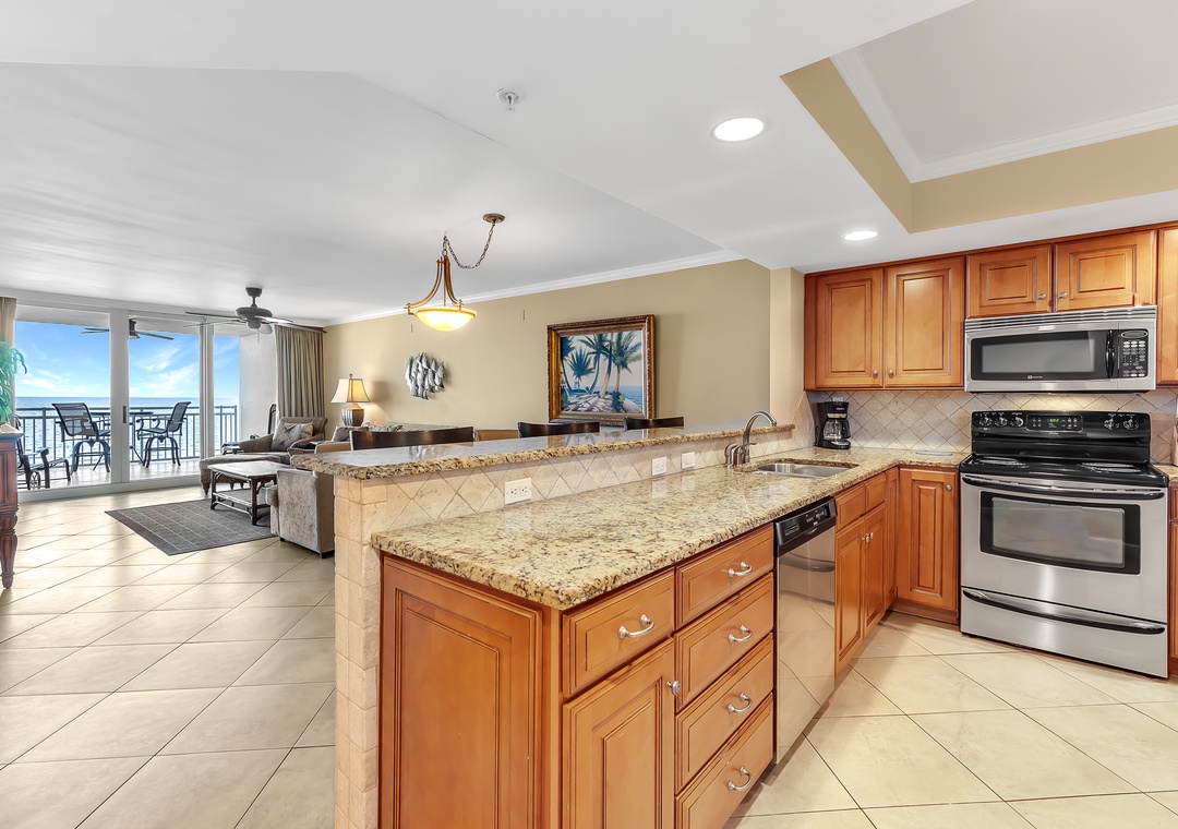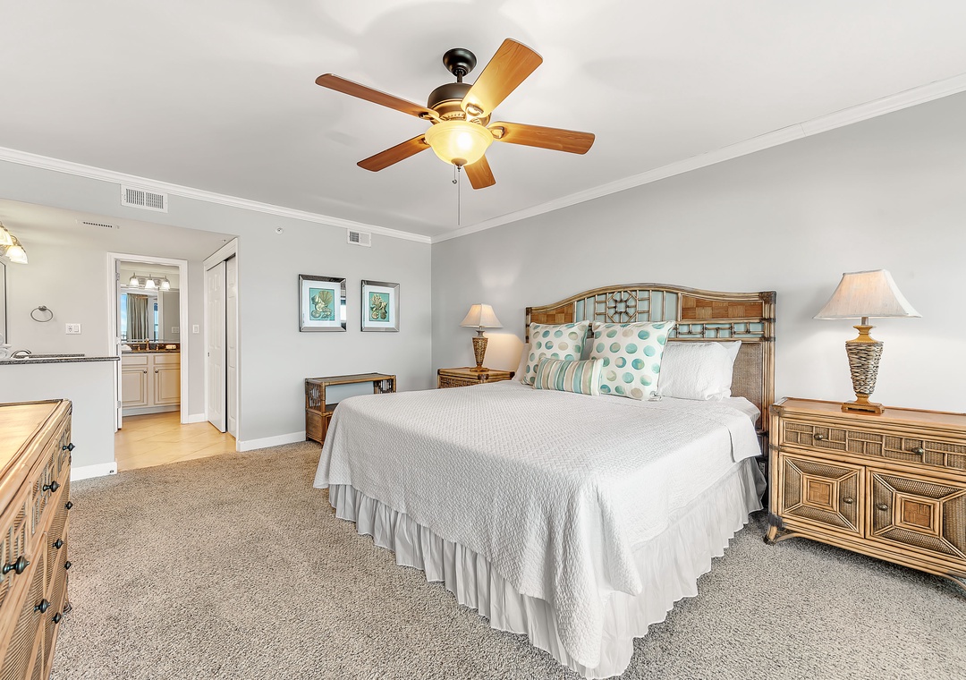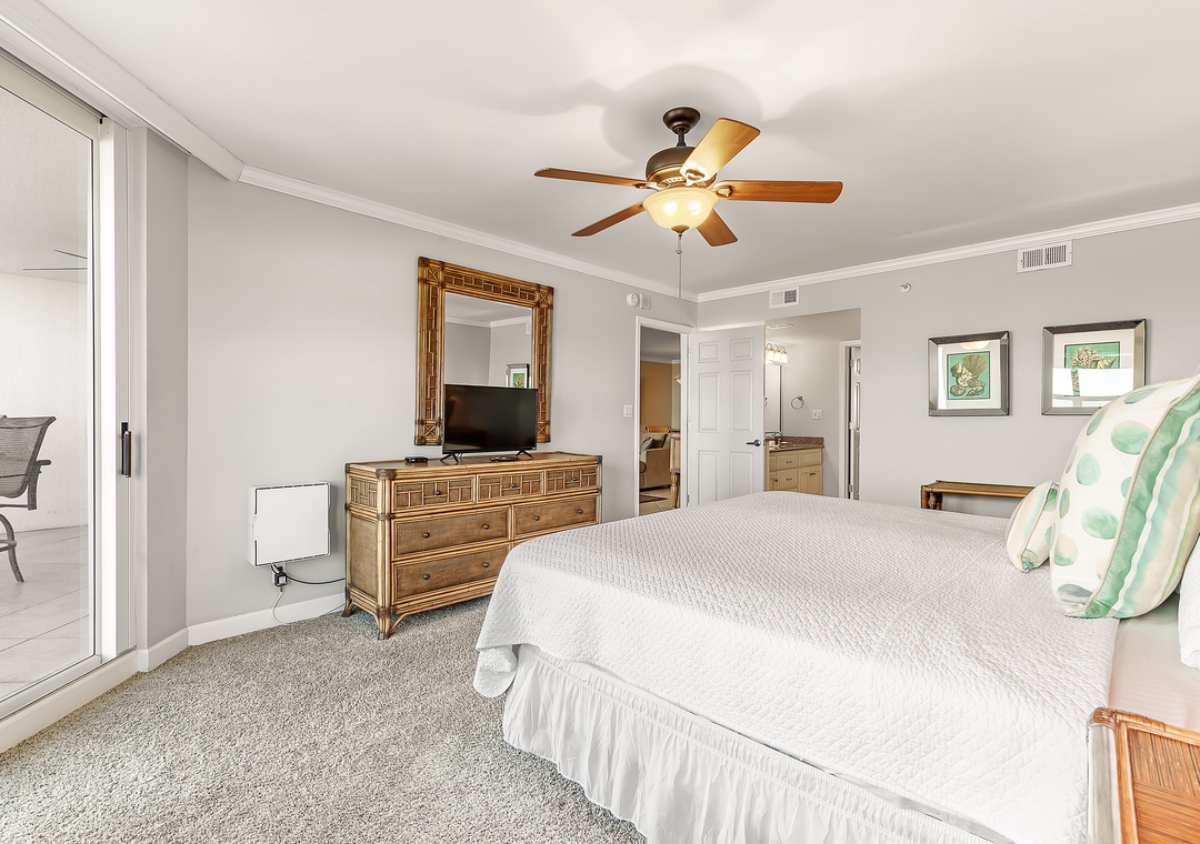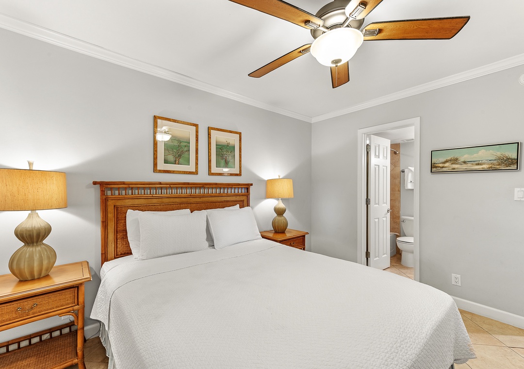 The master is the perfect restful retreat, with a plush king bed. The master bathroom features 2 granite vanities allowing for plenty of counter and cabinet space. The second bedroom is filled with queen bed and a second bath. Including the queen sleeper sofa in the living room, this unit comfortably accommodates up to 6 guests!